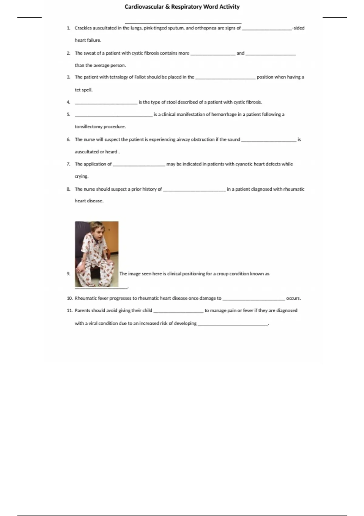 Cardiovascular & Respiratory Word Activity