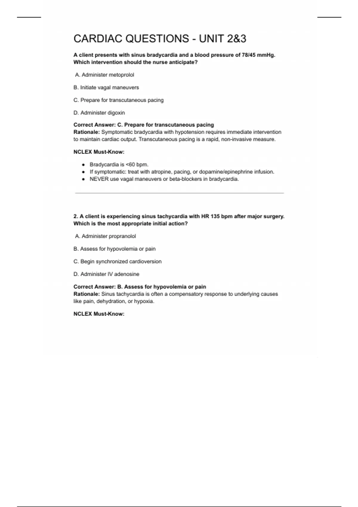 2. A client is experiencing sinus tachycardia with HR 135 bpm after major surgery.