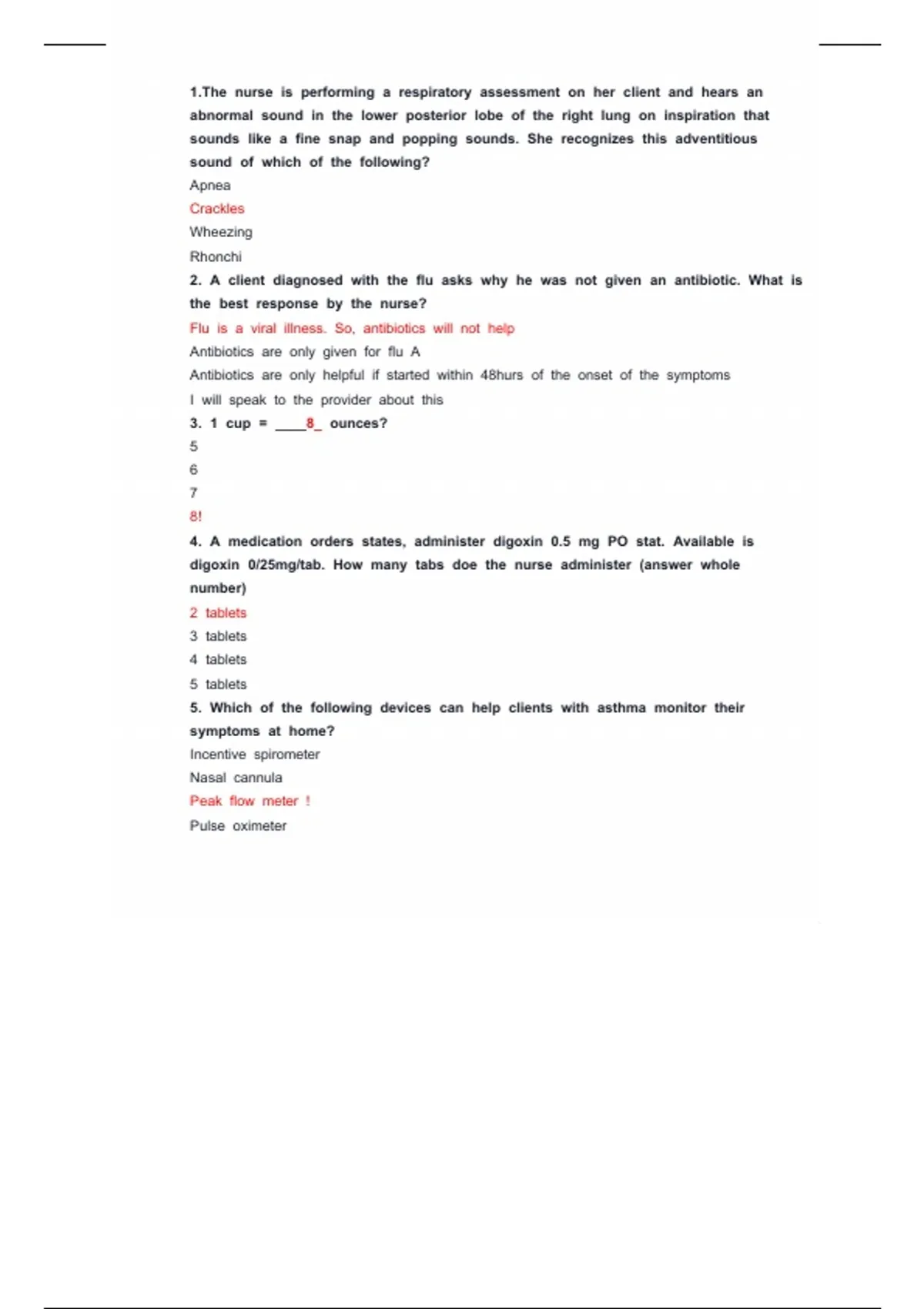 1.The nurse is performing a respiratory assessment on her client and hears an