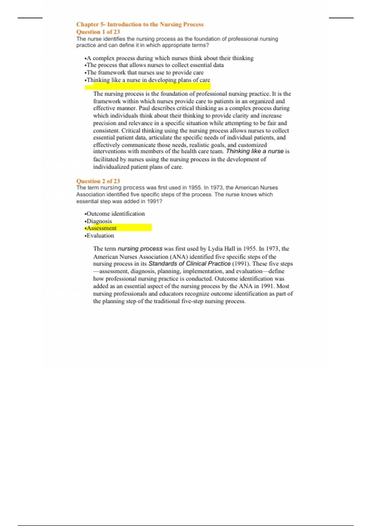 The term nursing processwas first used in 1955. In 1973, the American Nurses