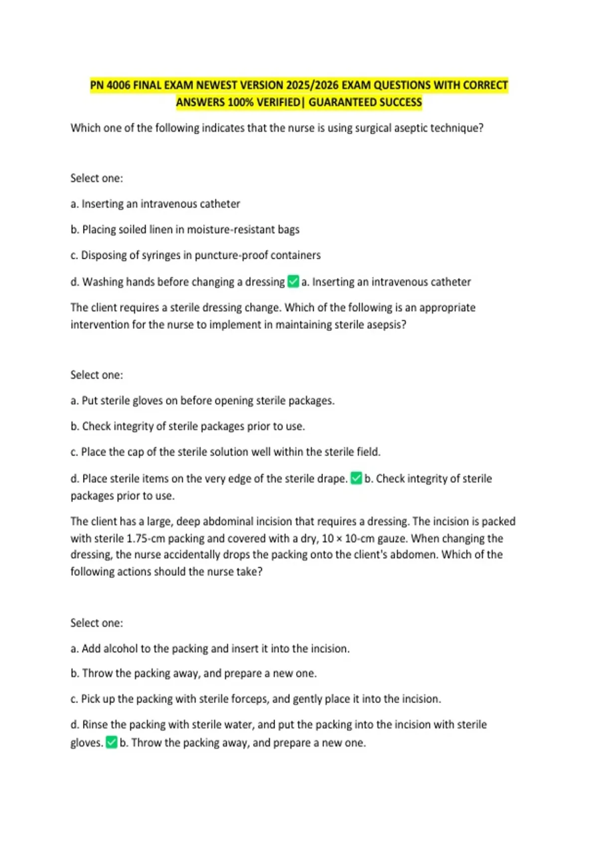 PN 4006 FINAL EXAM NEWEST VERSION 2025/2026 EXAM QUESTIONS WITH CORRECT