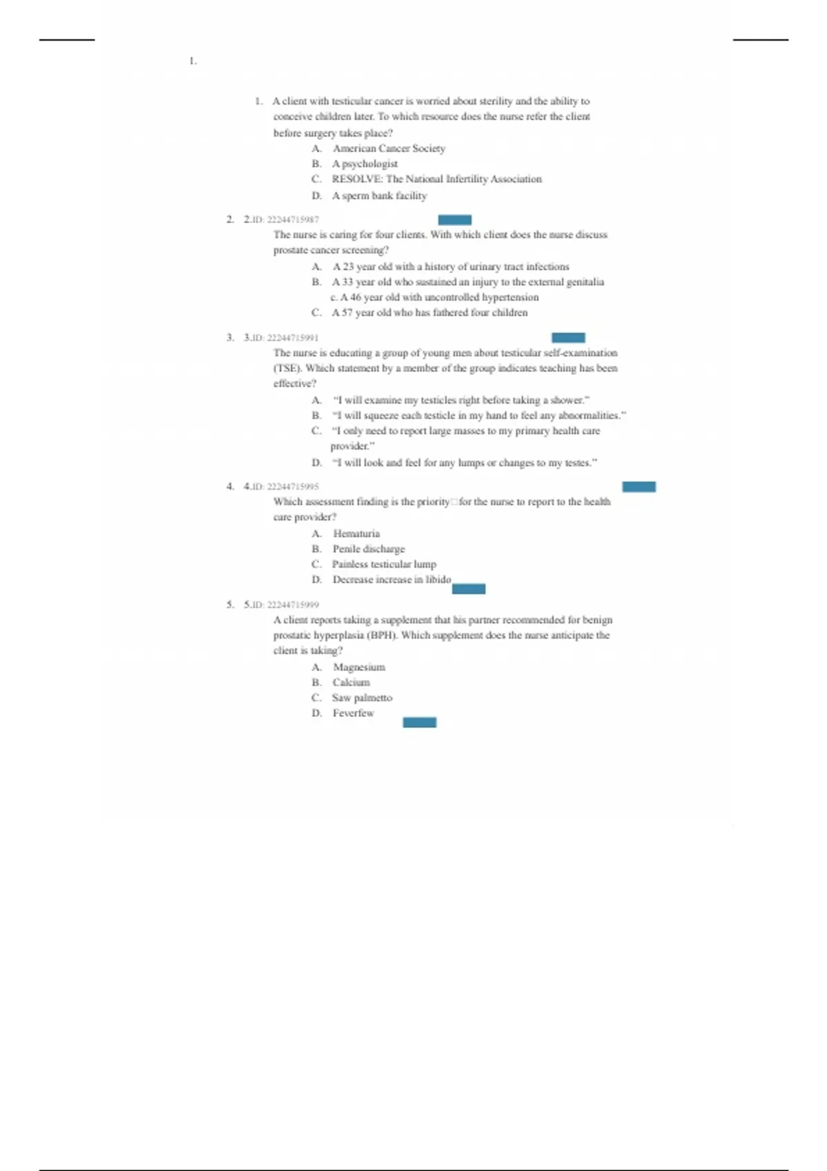 Chapter 67 Answers ADN - Testicular & Prostate Cancer Practice Qs