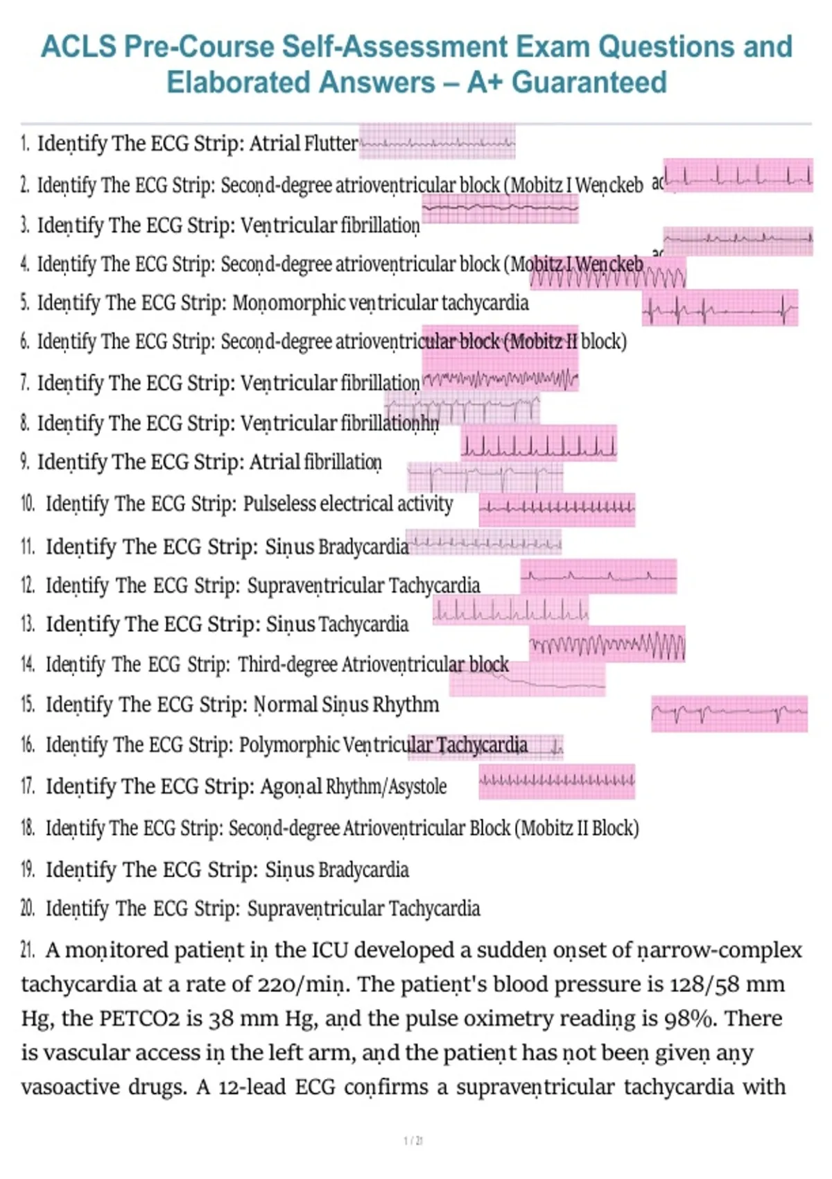 ACLS Pre-Course Self-Assessment Exam Questions and