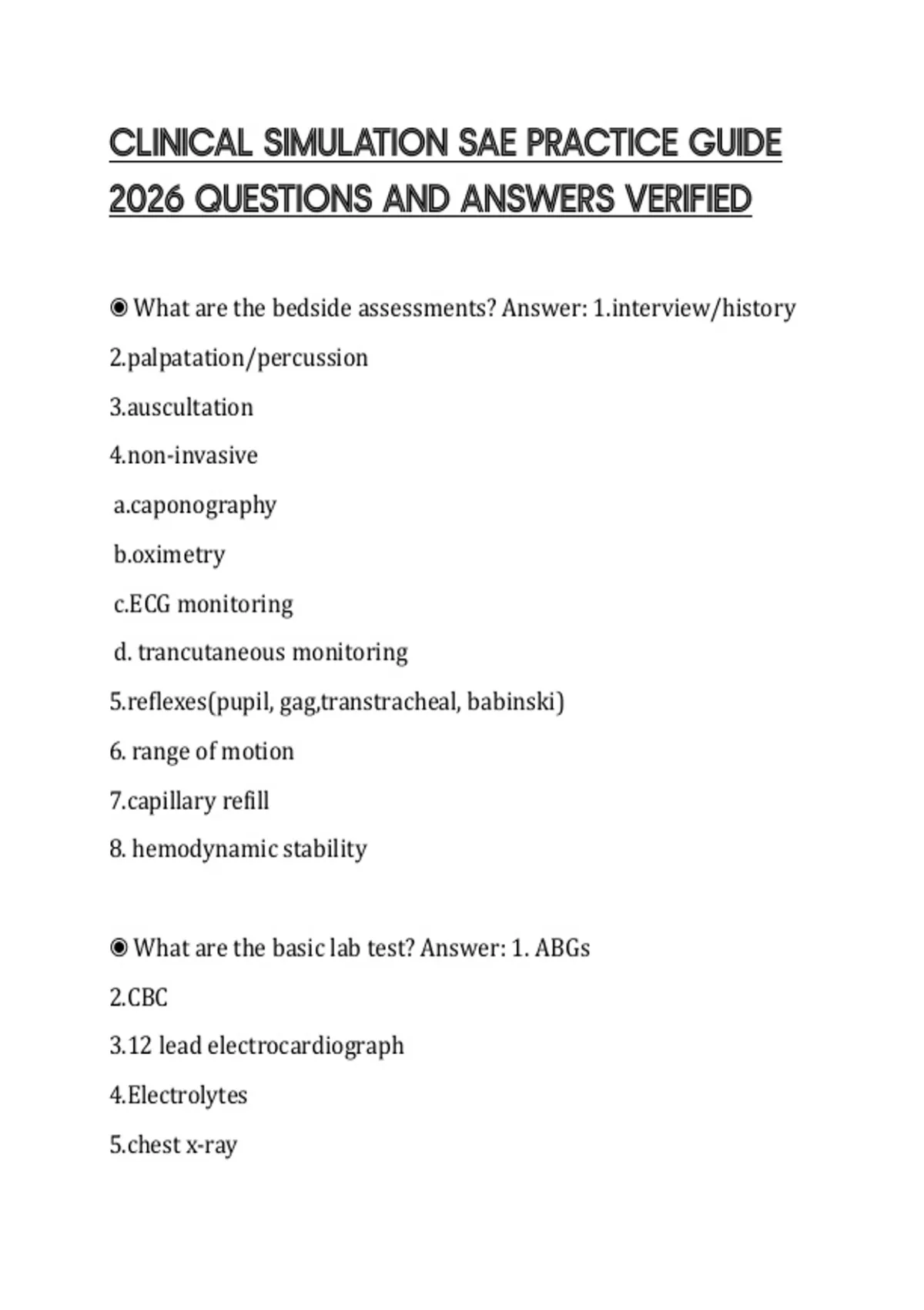◉ What are the basic lab test? Answer: 1. ABGs