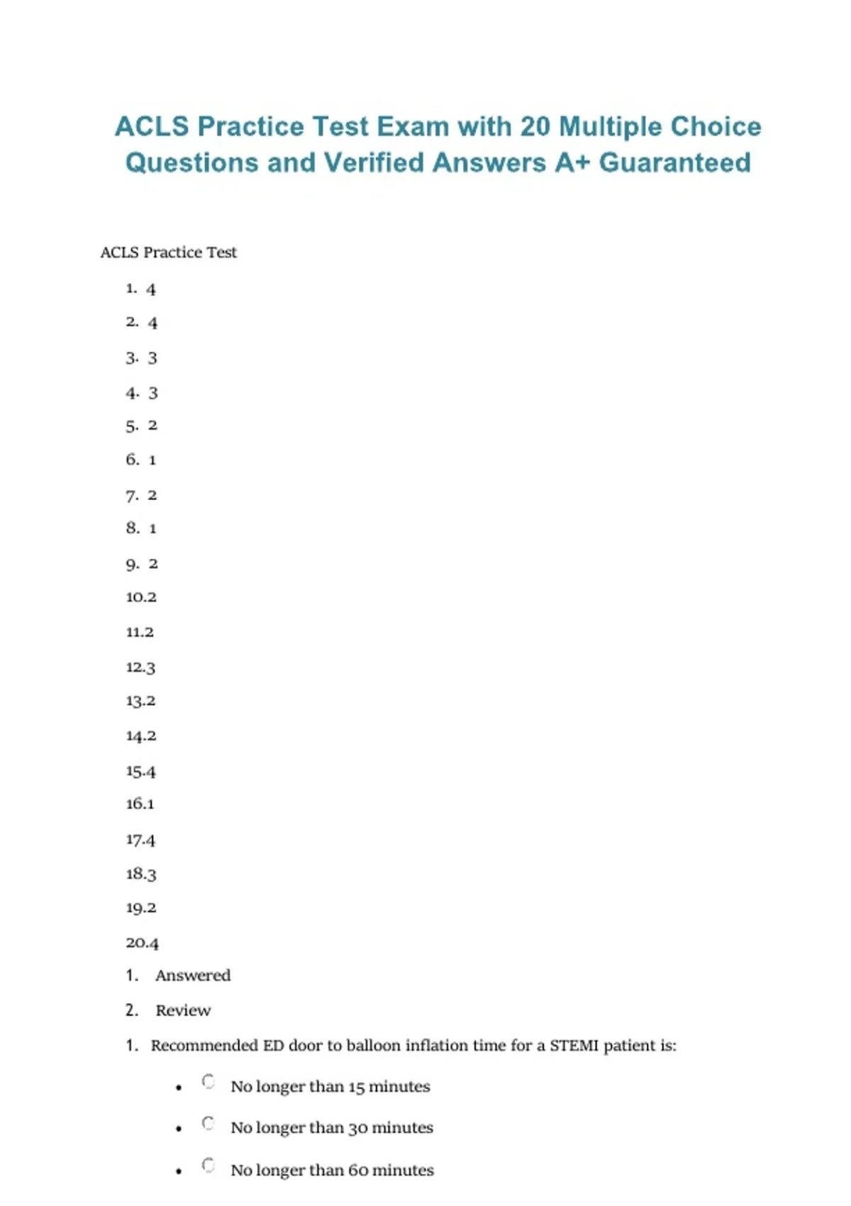 ACLS Practice Test Exam – Advanced Cardiovascular Life Support – 2026/2027 with 20 Multiple-Choice Questions and Verified A+-Level Answers