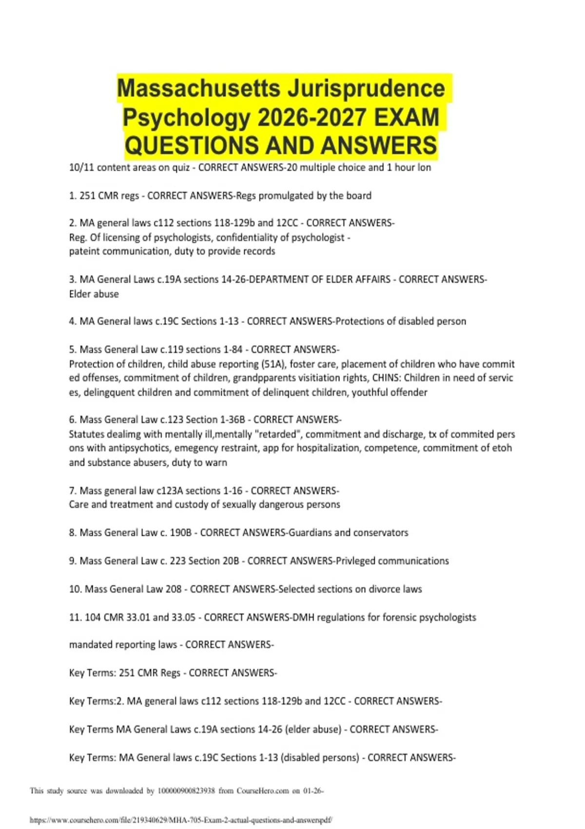 Massachusetts Jurisprudence Psychology EXAM QUESTIONS AND ANSWERS.