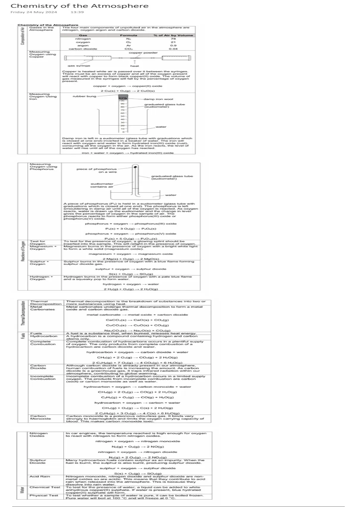 Summary Notes for Chemistry of the Atmosphere - Chemistry iGCSE Pearson Edexcel