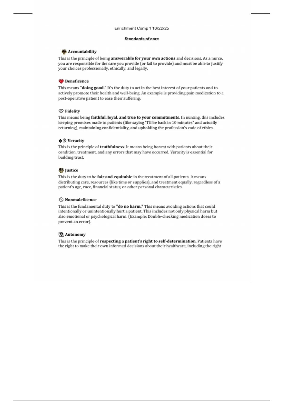 This is the principle of being answerable for your own actions and decisions. As a nurse,