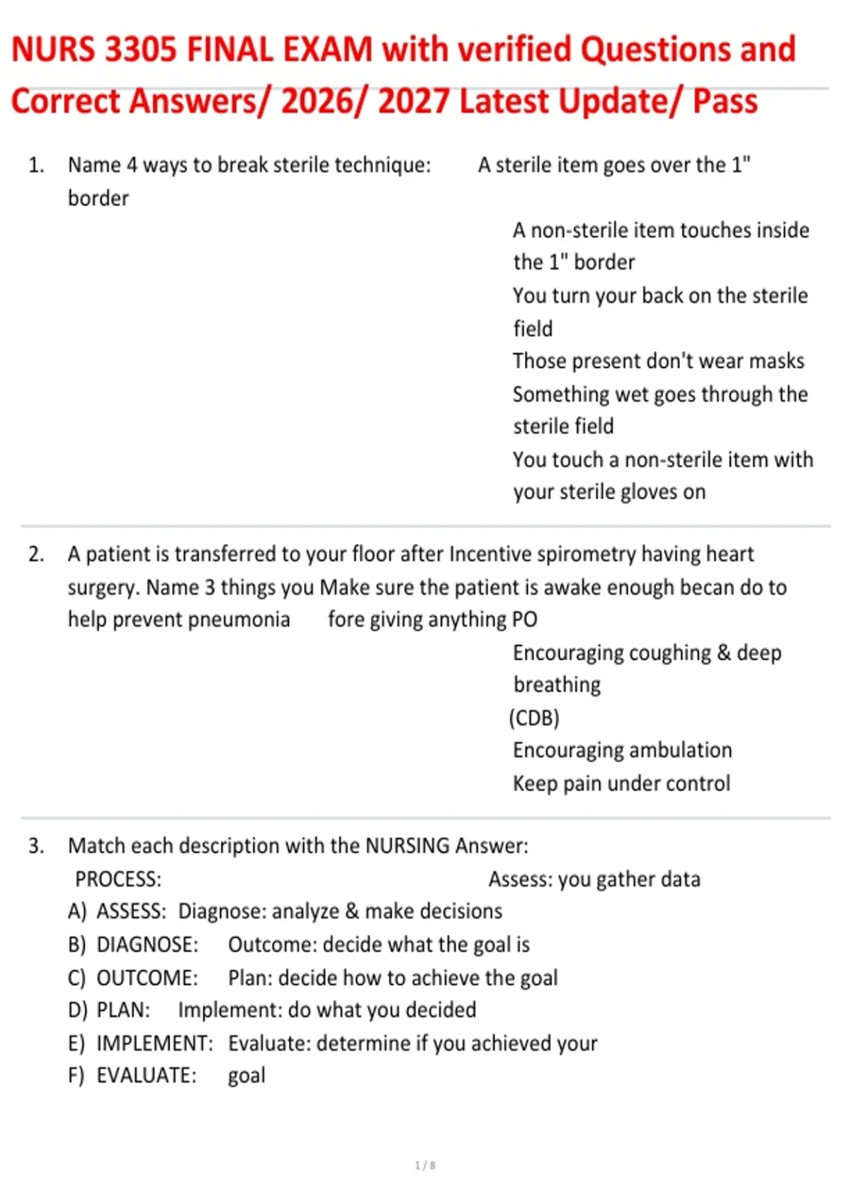 , NURS 3305 FINAL EXAM with verified Questions and