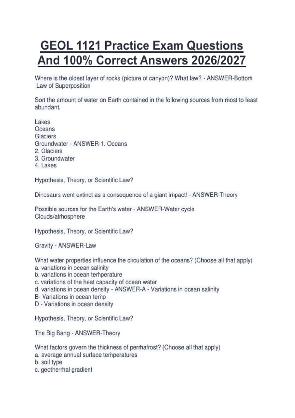 Groundwater - ANSWER-1. Oceans