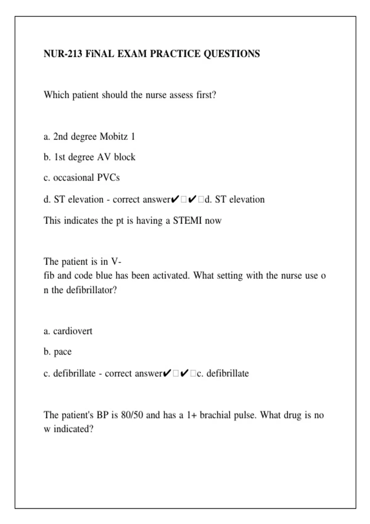 NUR-213 FiNAL EXAM PRACTICE QUESTIONS