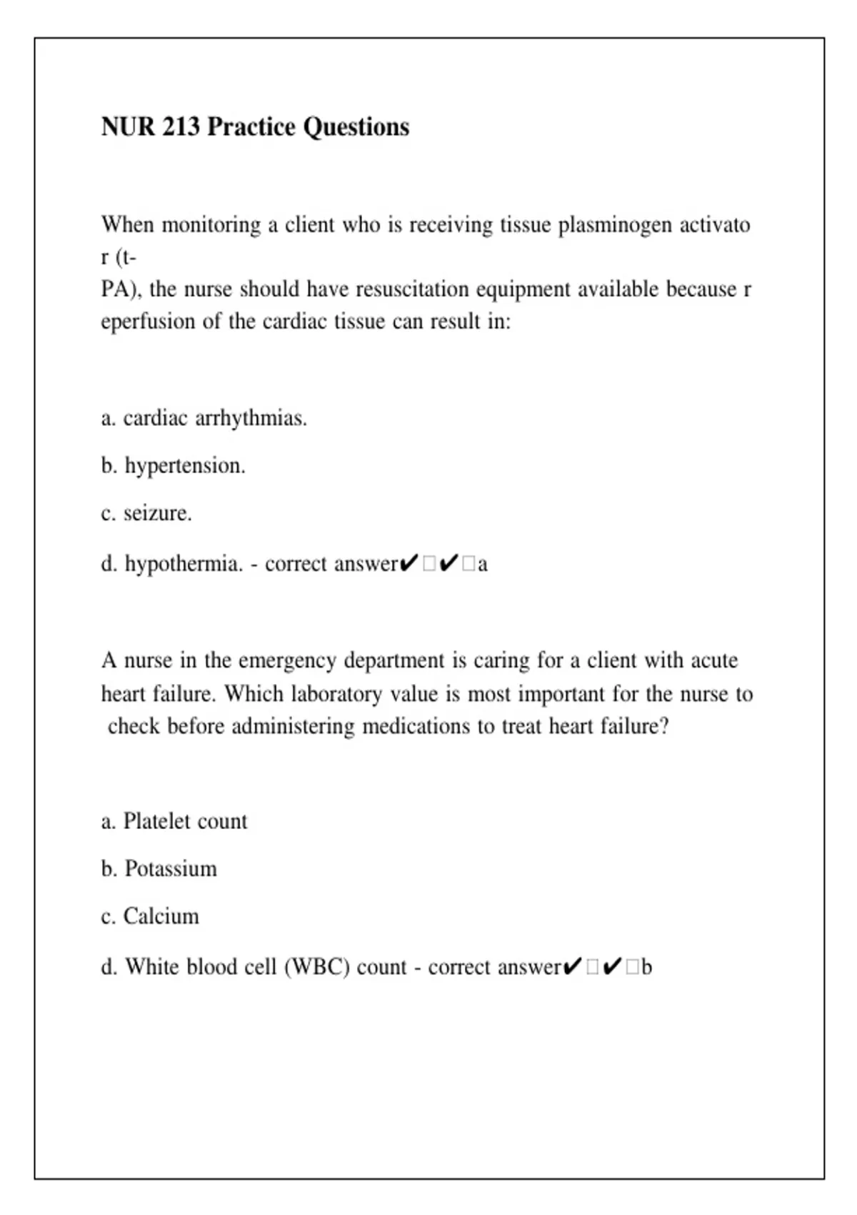 NUR 213 Practice Questions