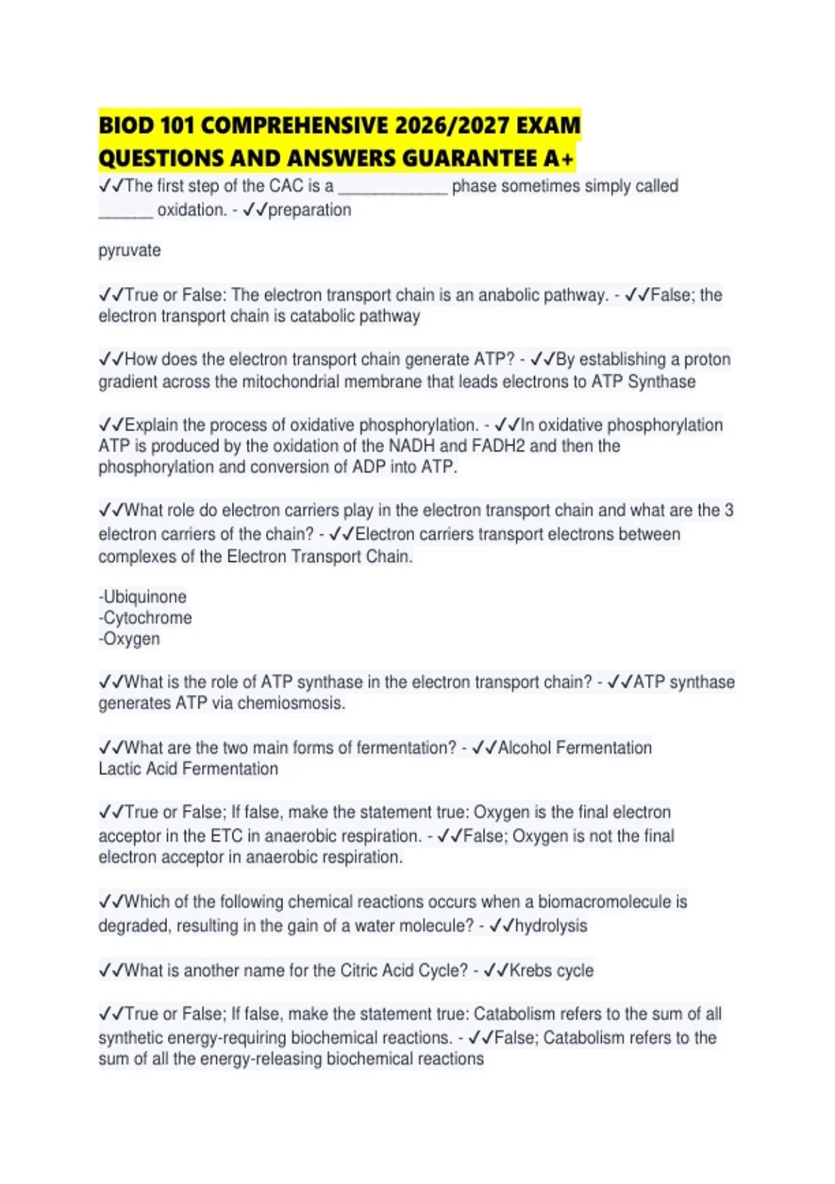 BIOD 101 COMPREHENSIVE 2026/2027 EXAM QUESTIONS AND ANSWERS GUARANTEE A+