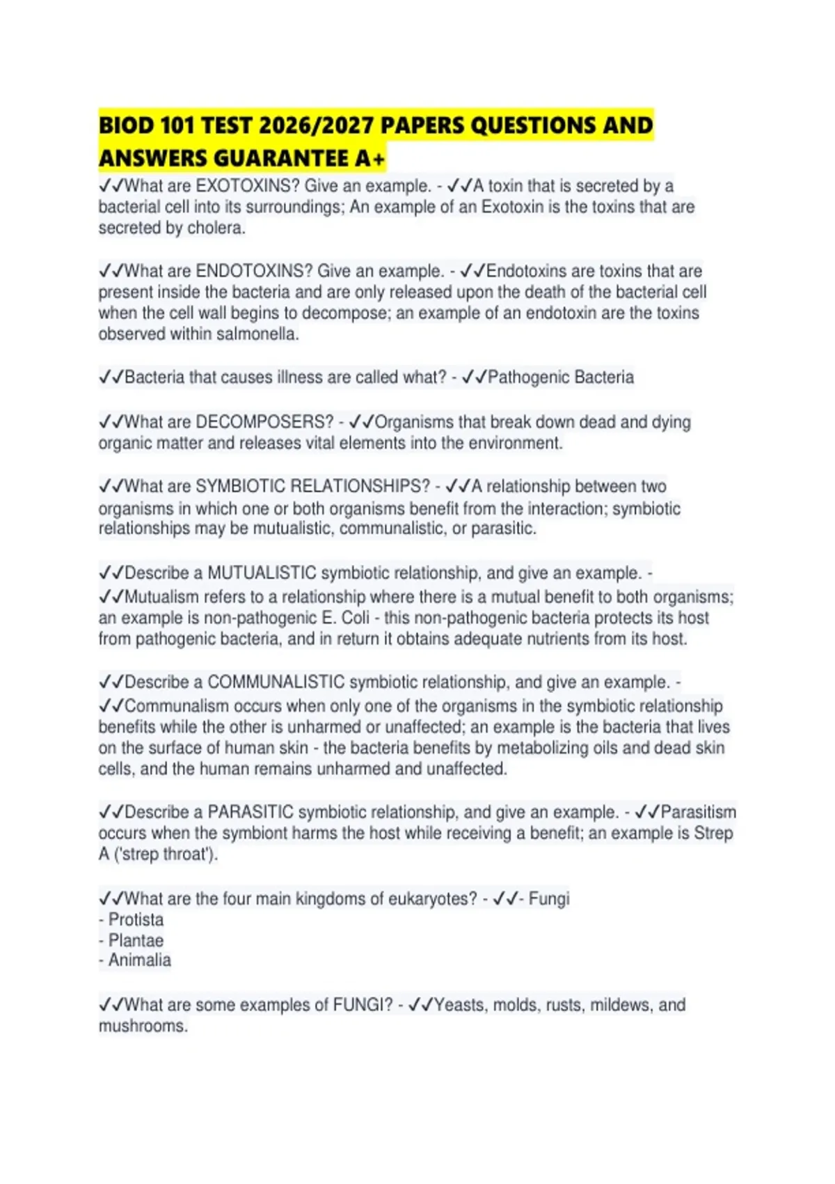 ✔✔What are some examples of FUNGI? - ✔✔Yeasts, molds, rusts, mildews, and