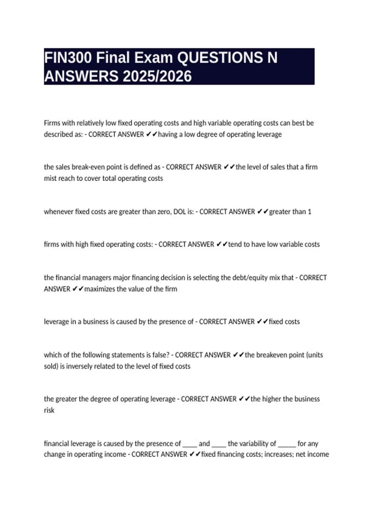 leverage in a business is caused by the presence of - CORRECT ANSWER ✔✔fixed costs