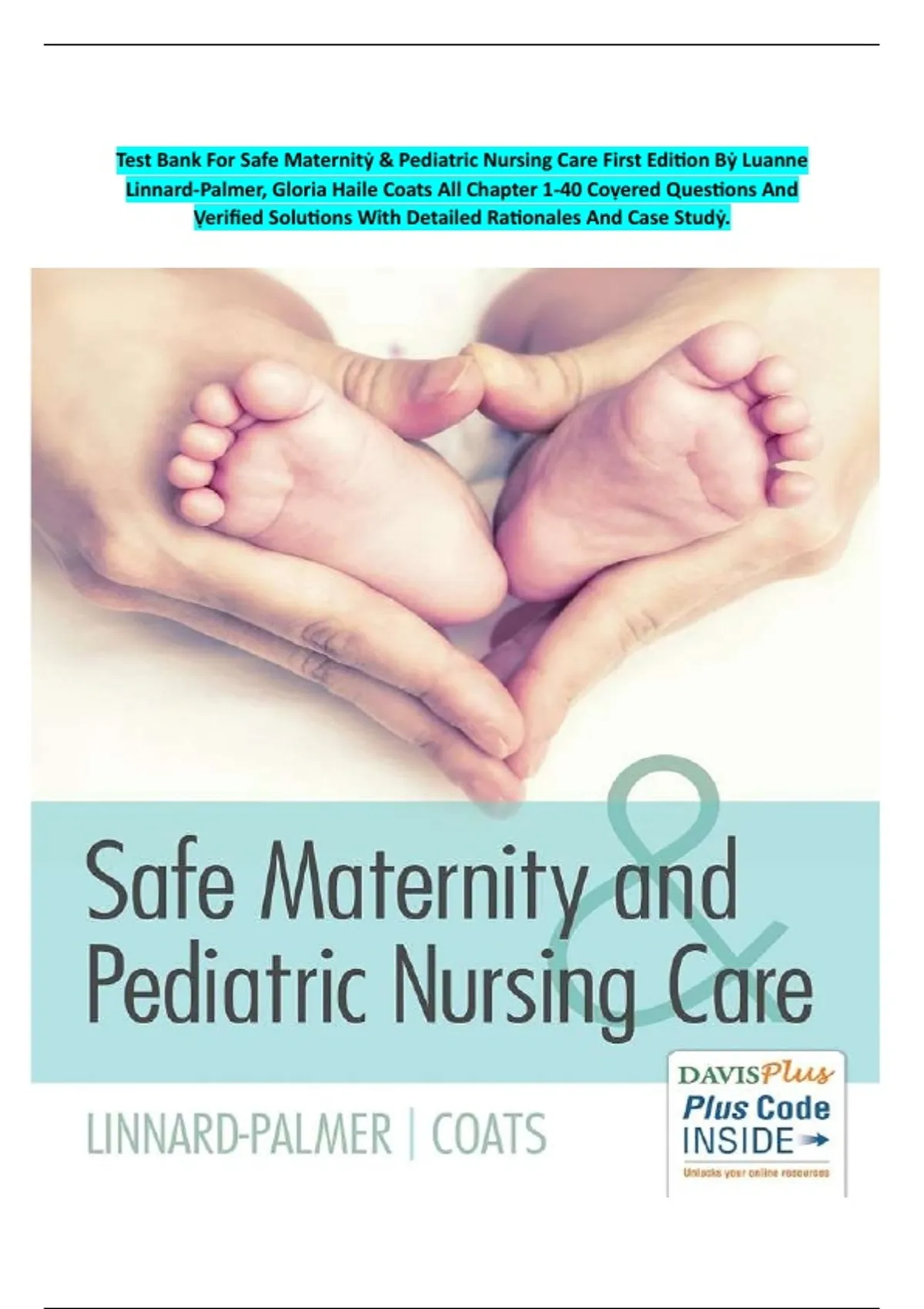 Complete Test Bank For Safe Maternity & Pediatric Nursing Care First Edition By Luanne Linnard-Palmer, Gloria Haile Coats | Al 1-40 Chapters Covered With Questions And Correct Answers With Correct Answers | With Rationales And Case Study.
