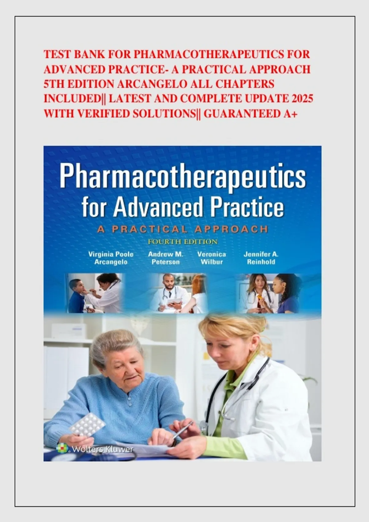 This Test Bank for Pharmacotherapeutics for Advanced Practice: A Practical Approach, 5th Edition (ISBN ) by Virginia Poole Arcangelo and contributors is a complete, up-to-date 2025 exam preparation resource designed specifically for advanced practice nursing students. It includes all chapters with exam-style questions, verified answers, and detailed rationales aligned to advanced pharmacotherapy decision-making. Content covers evidence-based drug selection, pharmacokinetics and pharmacodynamics, prescribing principles, patient-specific therapy, adverse effects, contraindications, and management of common and complex conditions across the lifespan. Ideal for NP, APRN, DNP coursework, exams, and clinical readiness, this downloadable PDF supports high-level clinical reasoning and confident pharmacologic practice.