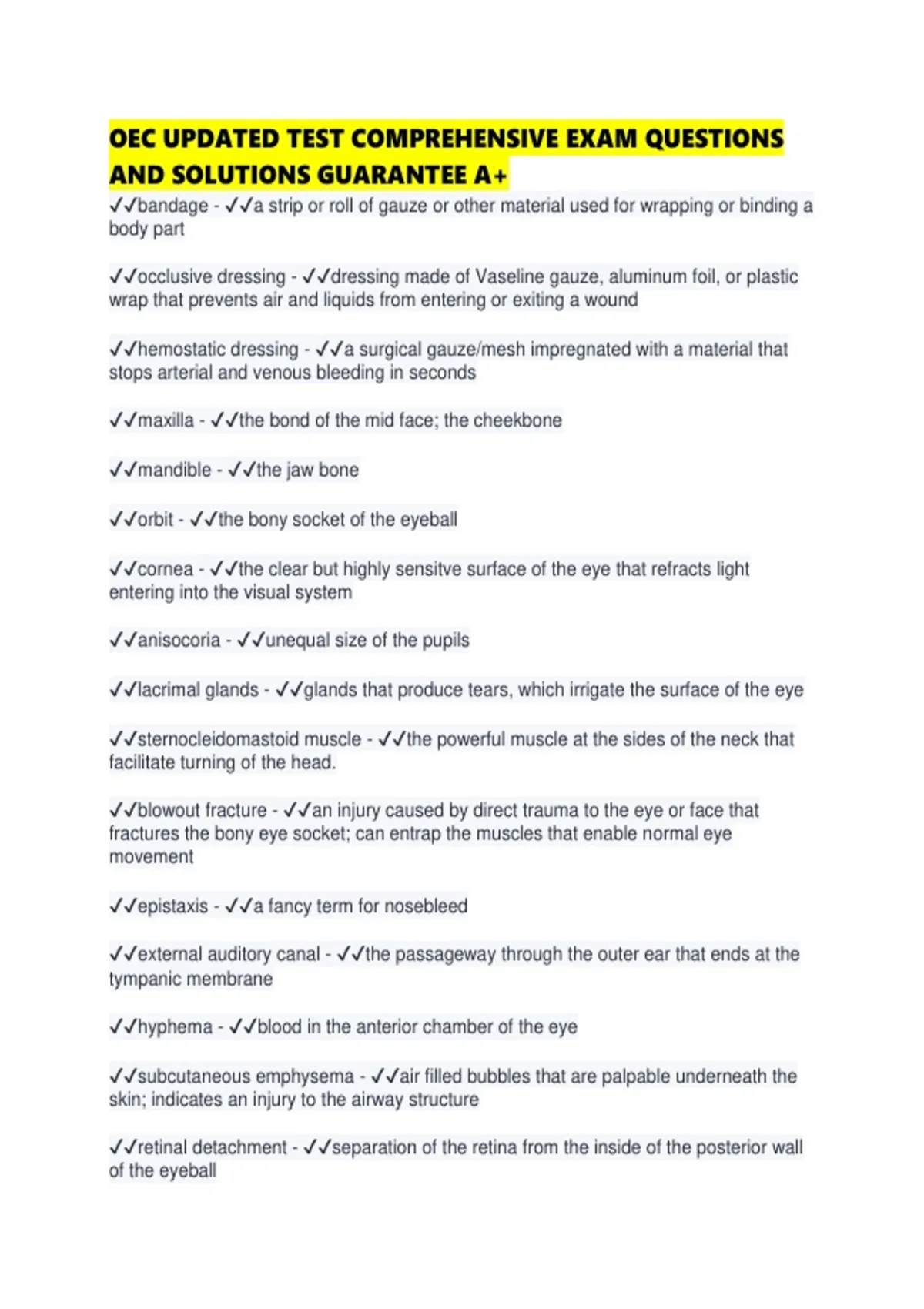 OEC UPDATED TEST COMPREHENSIVE EXAM QUESTIONS AND SOLUTIONS GUARANTEE