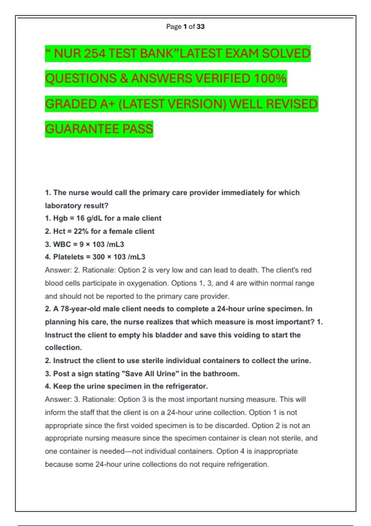 “ NUR 254 TEST BANK”LATEST EXAM SOLVED