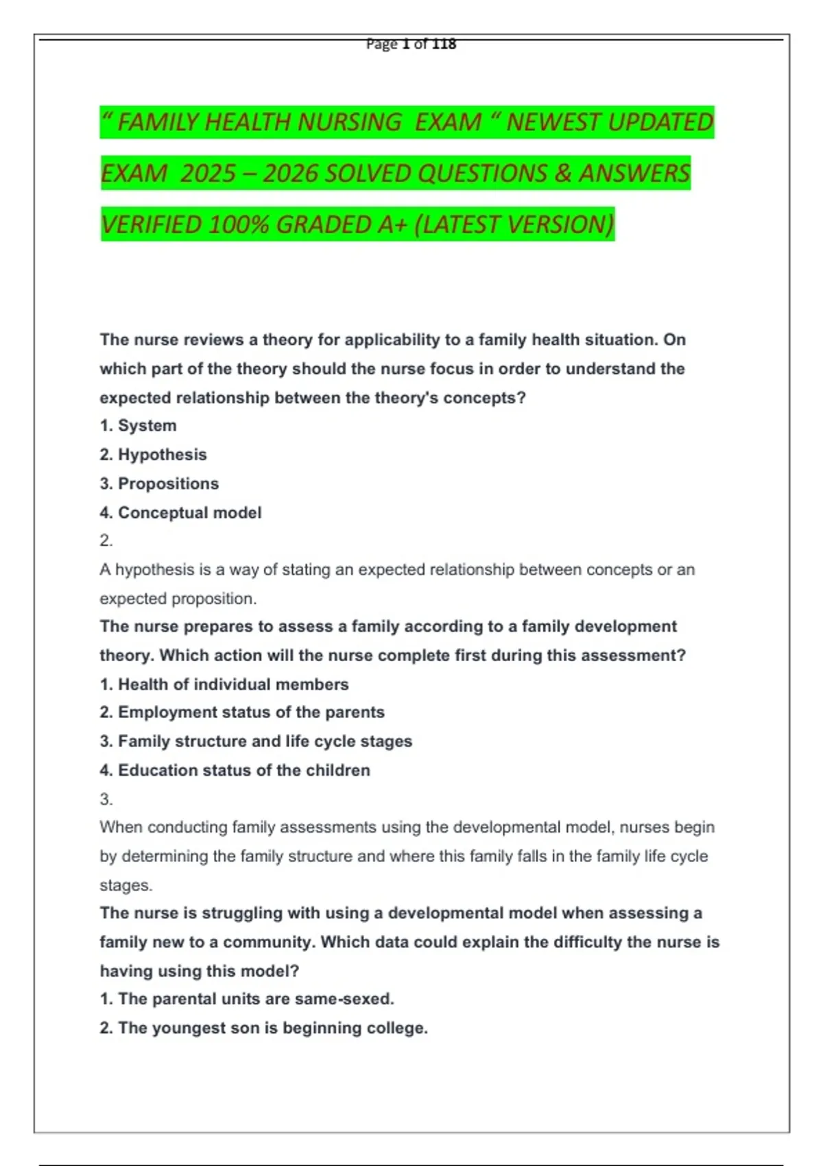 “ FAMILY HEALTH NURSING EXAM “ NEWEST UPDATED