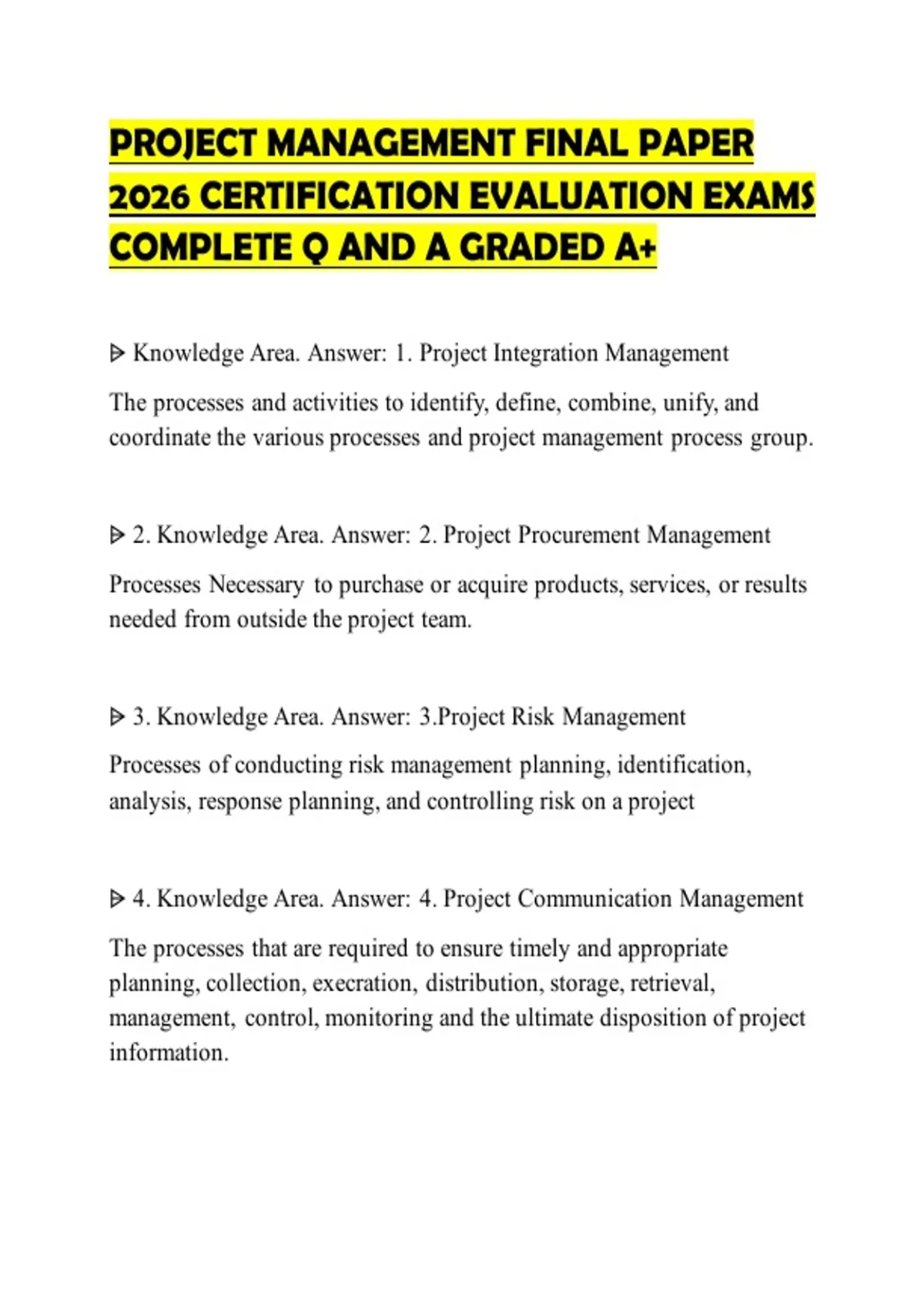 PROJECT MANAGEMENT FINAL PAPER 2026 CERTIFICATION EVALUATION EXAMS COMPLETE Q AND A GRADED A+