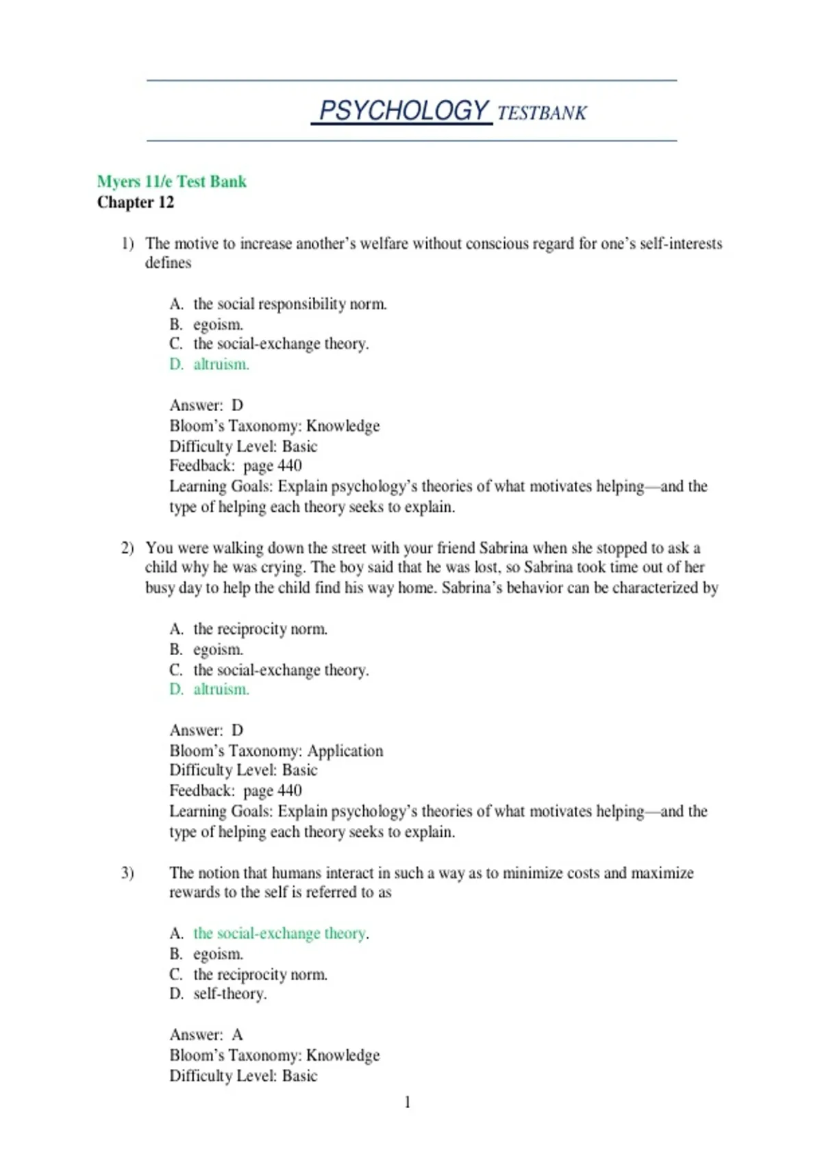 PSYCHOLOGY SOCPSY FINALS 11TH EDITION BY MYERS TESTBANK |QUESTIONS AND ANSWERS|100%GUARANTEED PASS|LATEST EXAM