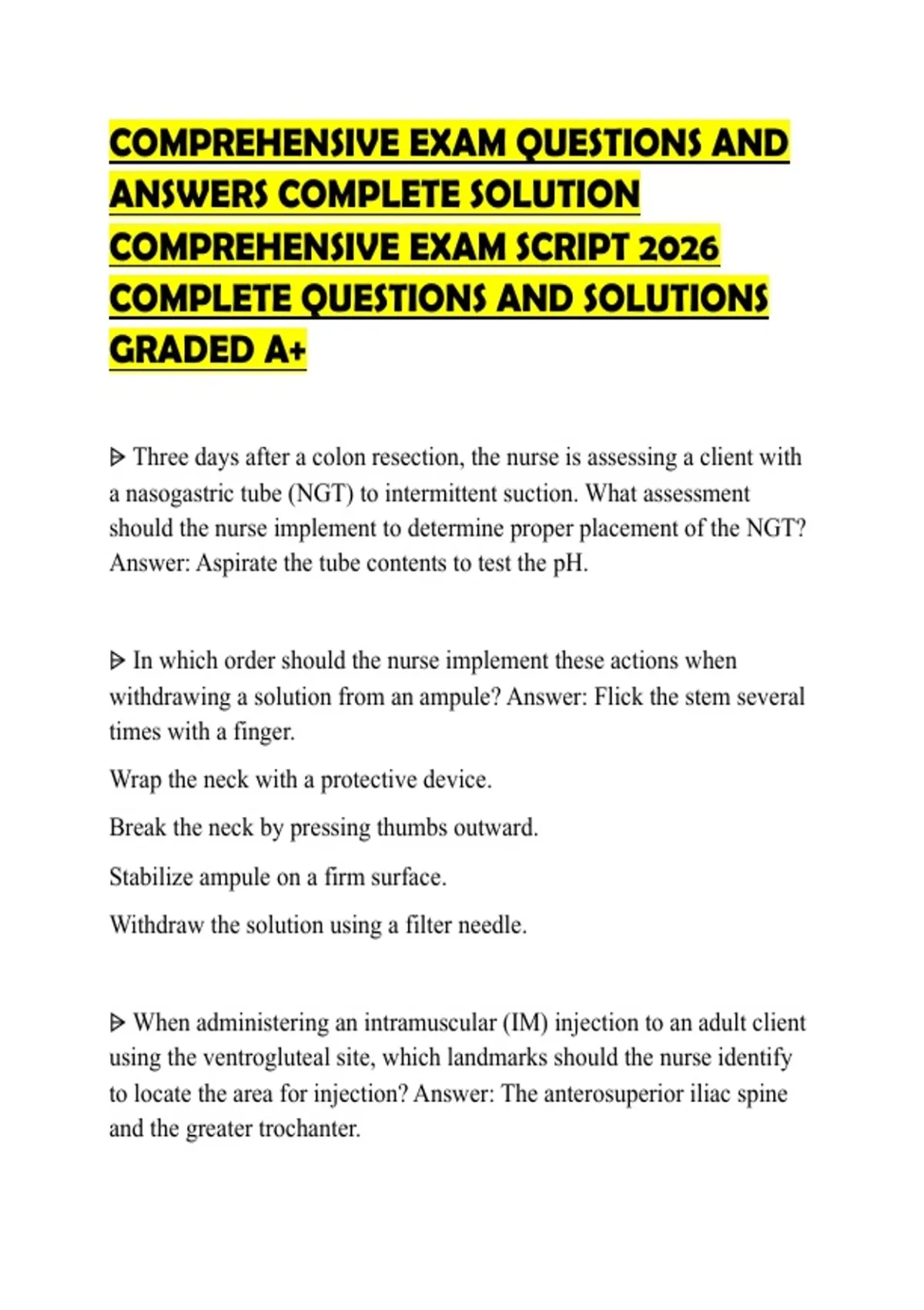 COMPREHENSIVE EXAM QUESTIONS AND ANSWERS COMPLETE SOLUTION COMPREHENSIVE EXAM SCRIPT 2026 COMPLETE QUESTIONS AND SOLUTIONS GRADED A+