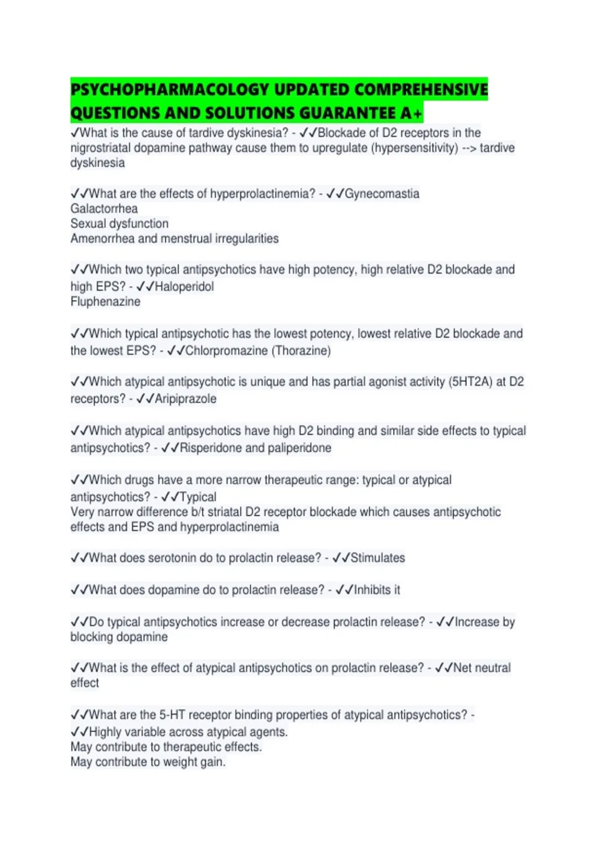 PSYCHOPHARMACOLOGY UPDATED COMPREHENSIVE QUESTIONS AND SOLUTIONS