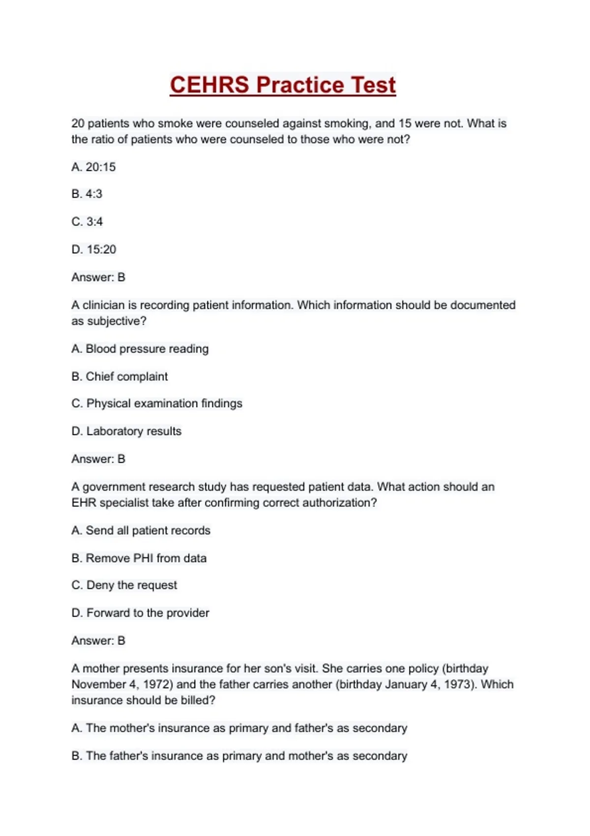 CEHRS Practice Test