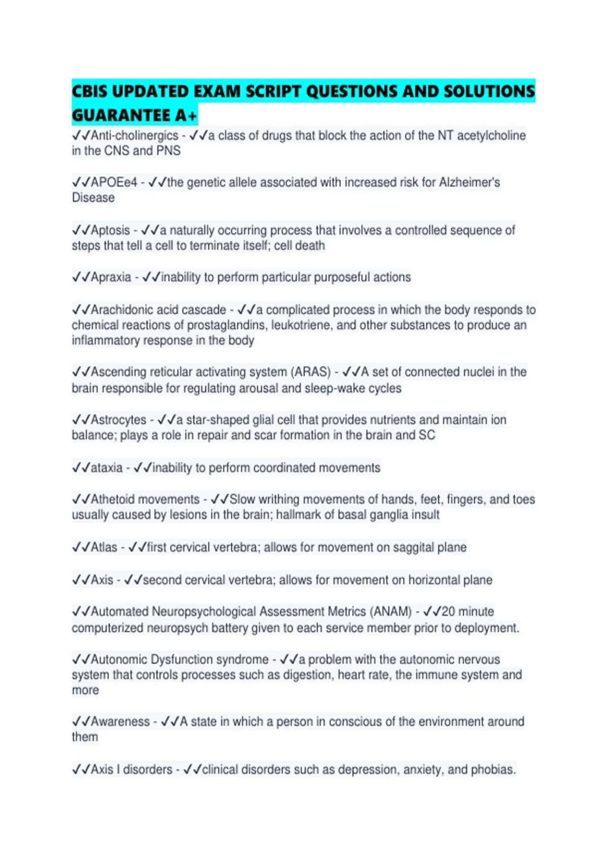 CBIS UPDATED EXAM SCRIPT QUESTIONS AND SOLUTIONS GUARANTEE