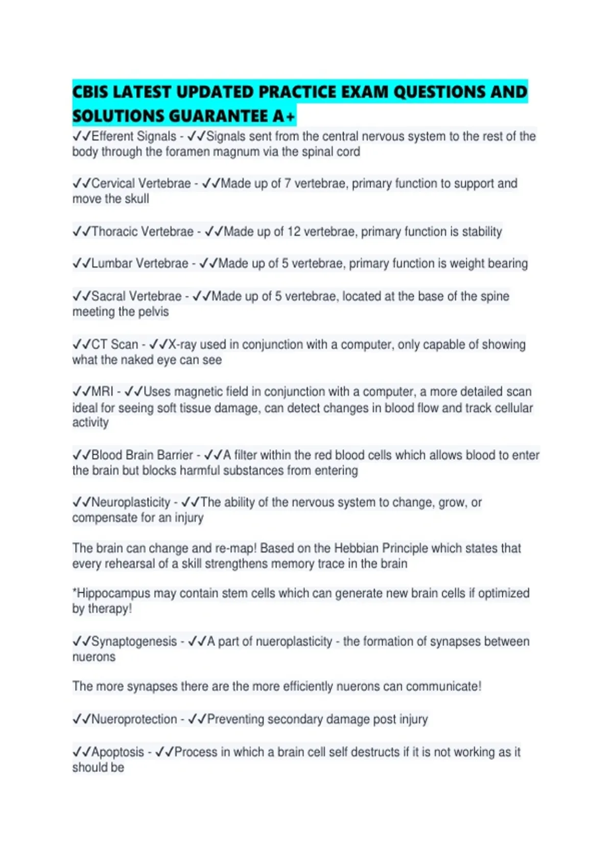 CBIS LATEST UPDATED PRACTICE EXAM QUESTIONS AND SOLUTIONS GUARANTEE
