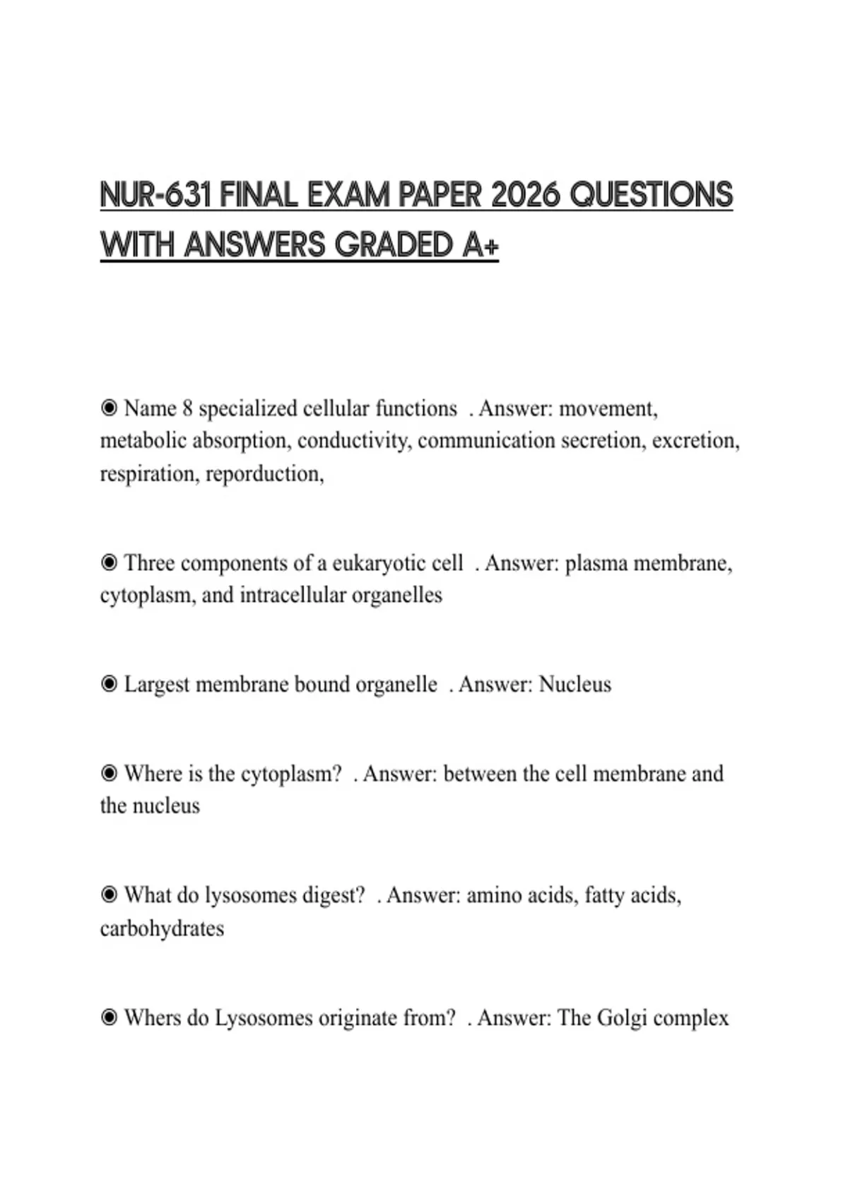 NUR-631 FINAL EXAM PAPER 2026 QUESTIONS WITH ANSWERS GRADED A+