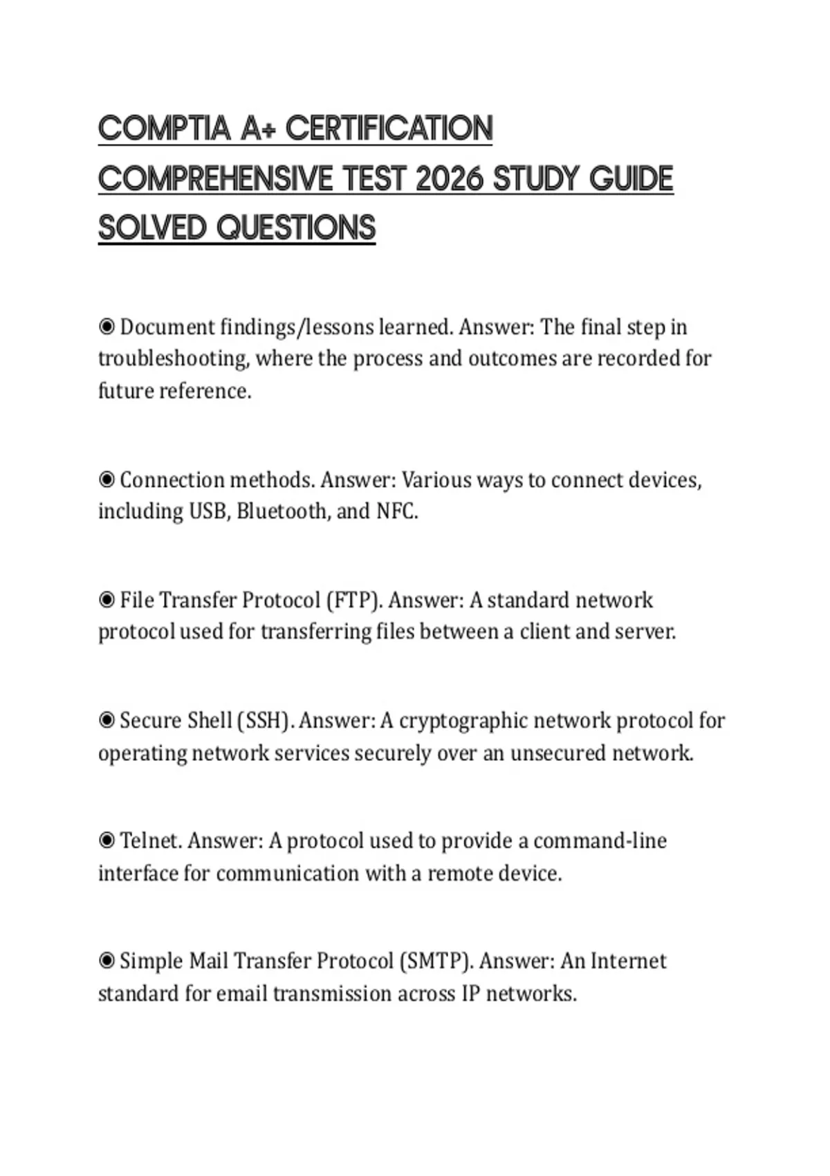 COMPTIA A+ CERTIFICATION COMPREHENSIVE TEST 2026 STUDY GUIDE SOLVED QUESTIONS