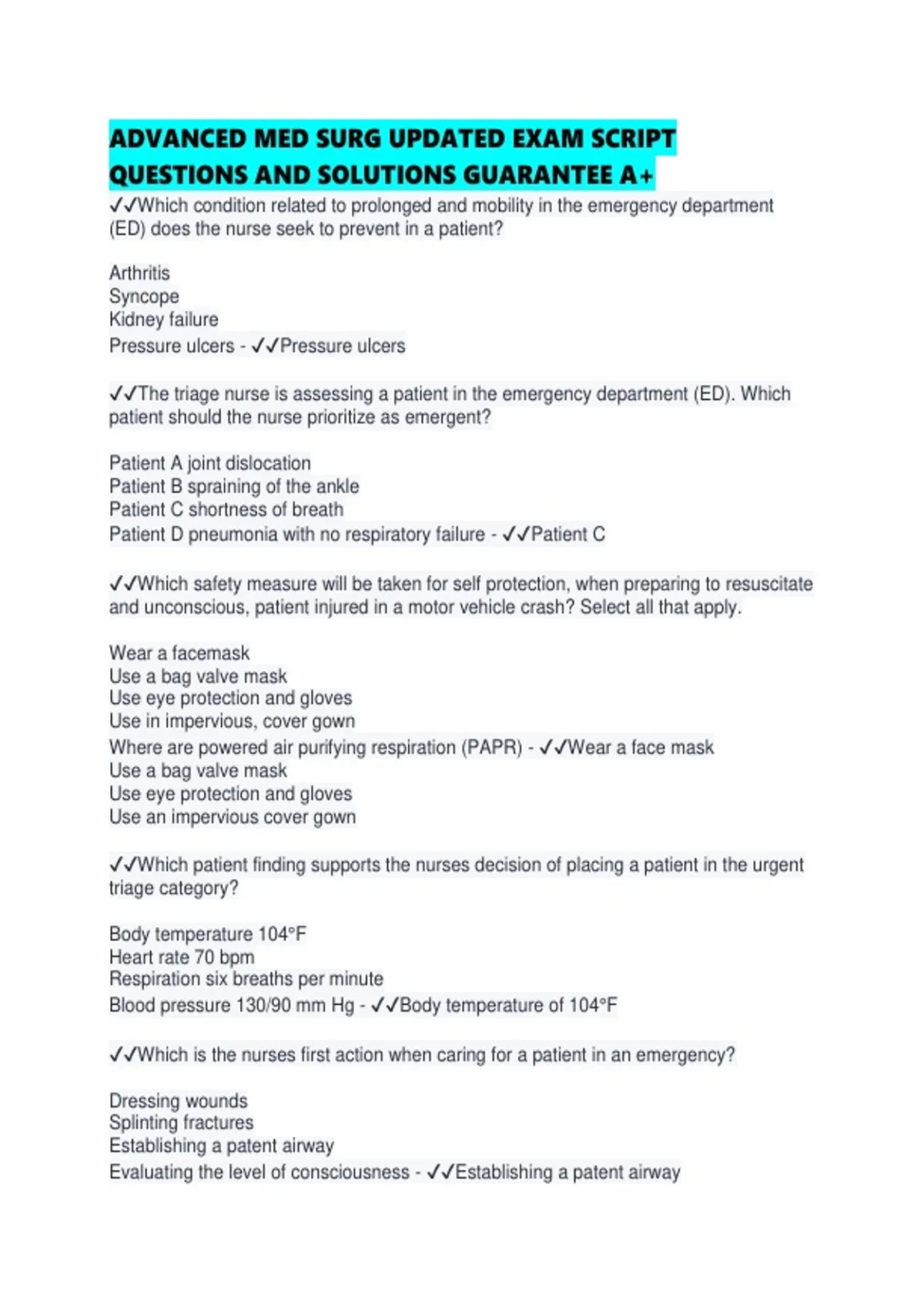 ADVANCED MED SURG UPDATED EXAM SCRIPT QUESTIONS AND SOLUTIONS GUARANTEE A.pdf