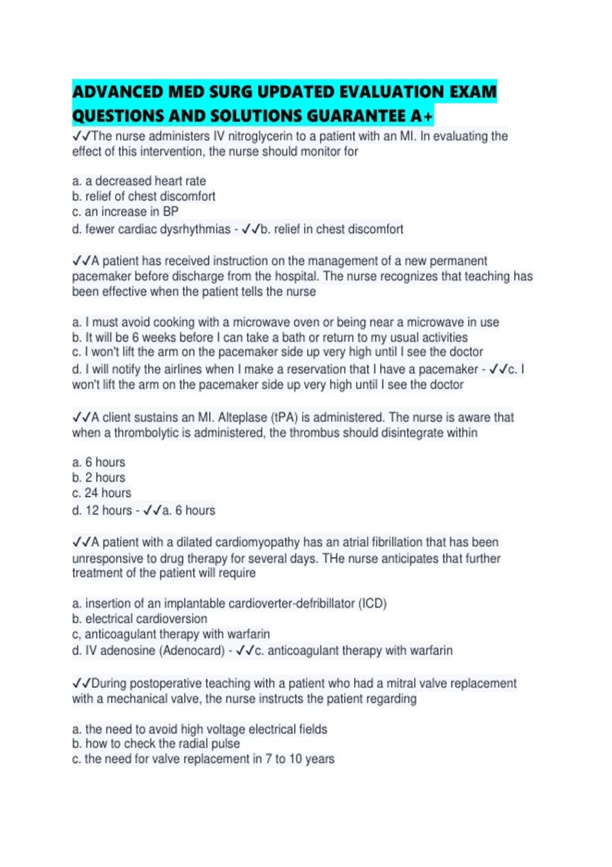 ADVANCED MED SURG UPDATED EVALUATION EXAM QUESTIONS AND SOLUTIONS GUARANTEE