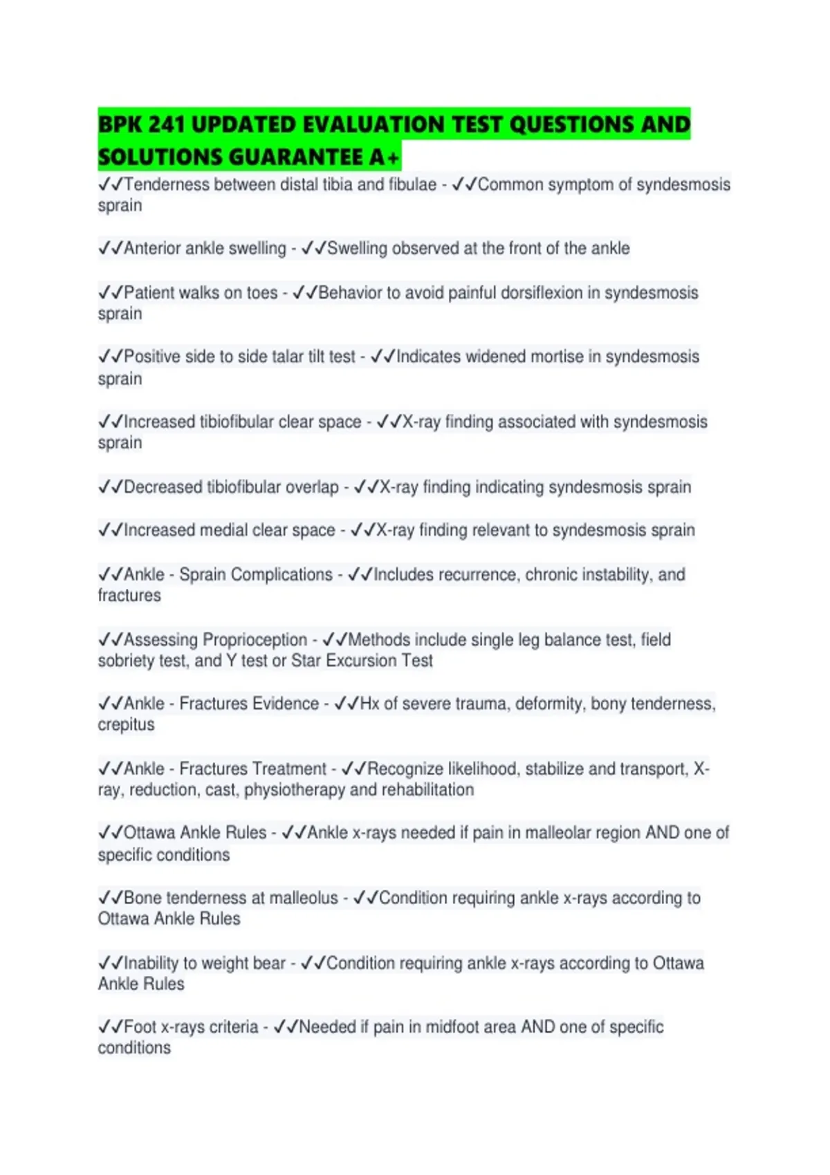 BPK 241 UPDATED EVALUATION TEST QUESTIONS AND