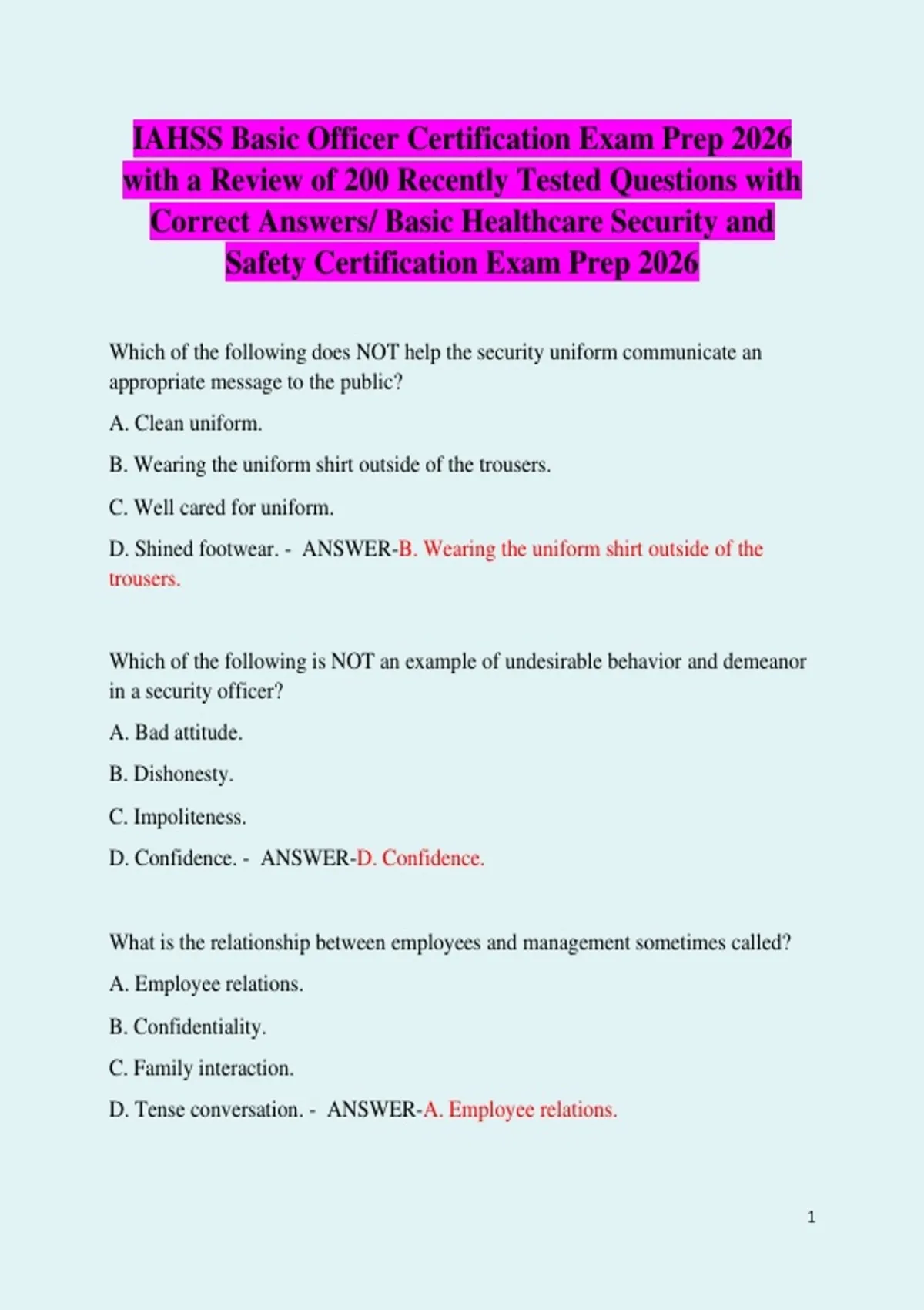 IAHSS Basic Officer Certification Exam Prep 2026 with a Review of 200 Recently Tested Questions with Correct Answers/ Basic Healthcare Security and Safety Certification Exam Prep 2026