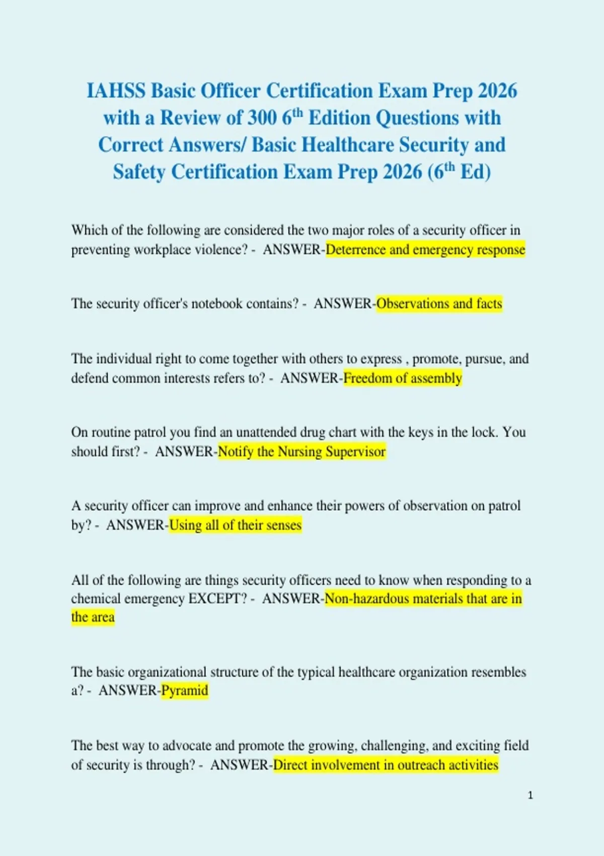 Correct Answers/ Basic Healthcare Security and