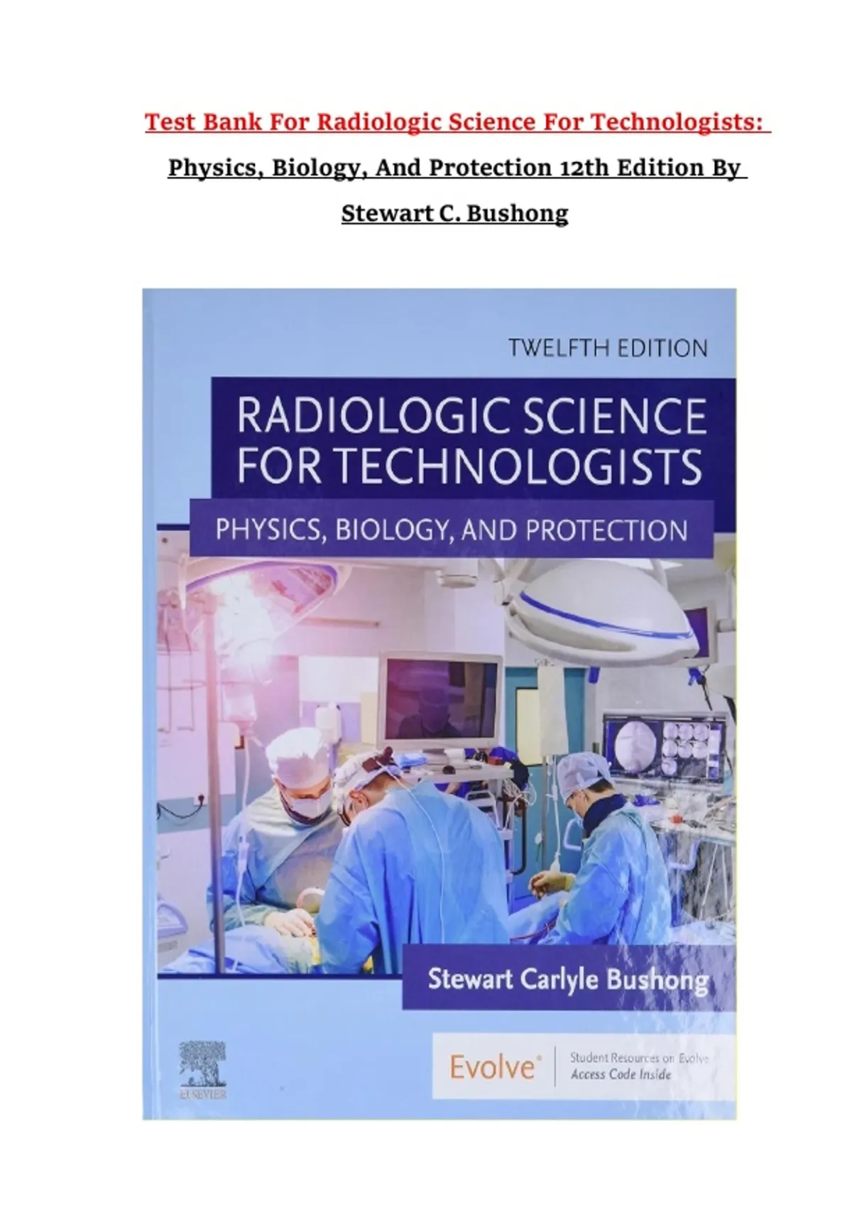 Test Bank For Radiologic Science For Technologists: Physics, Biology, And Protection 12th Edition By Stewart C. Bushong