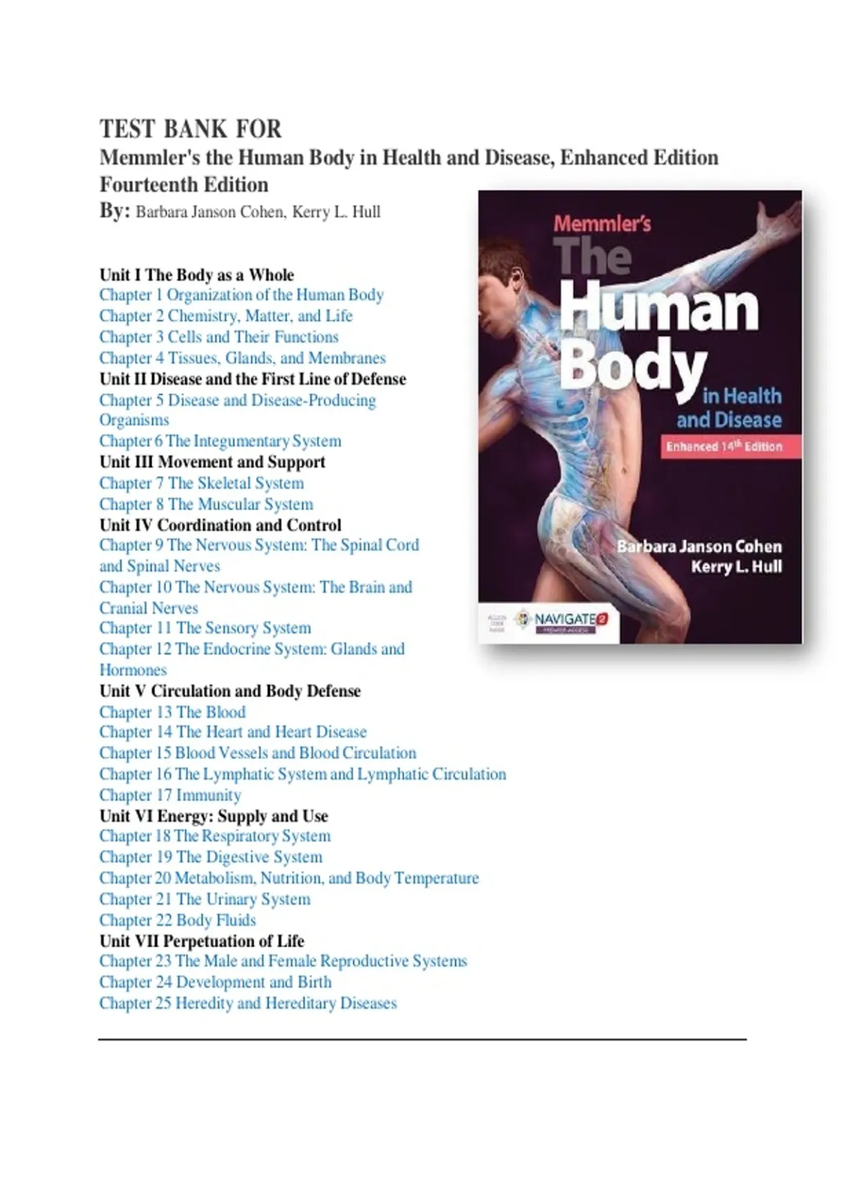 Test Bank for Memmler's The Human Body in Health and Disease 14th Edition | Updated/Latest 2025–2026