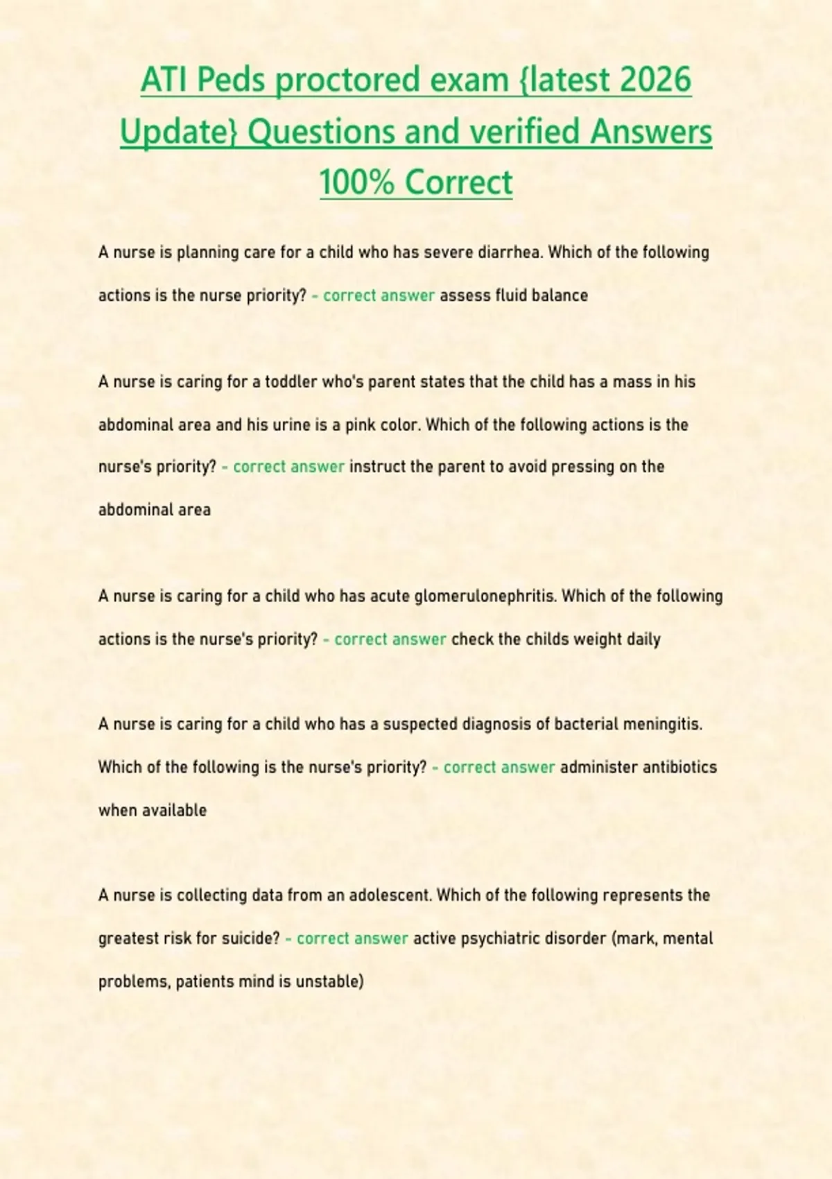 ATI Peds proctored exam -latest 2026 Update- Questions and verified Answers 100- Correct