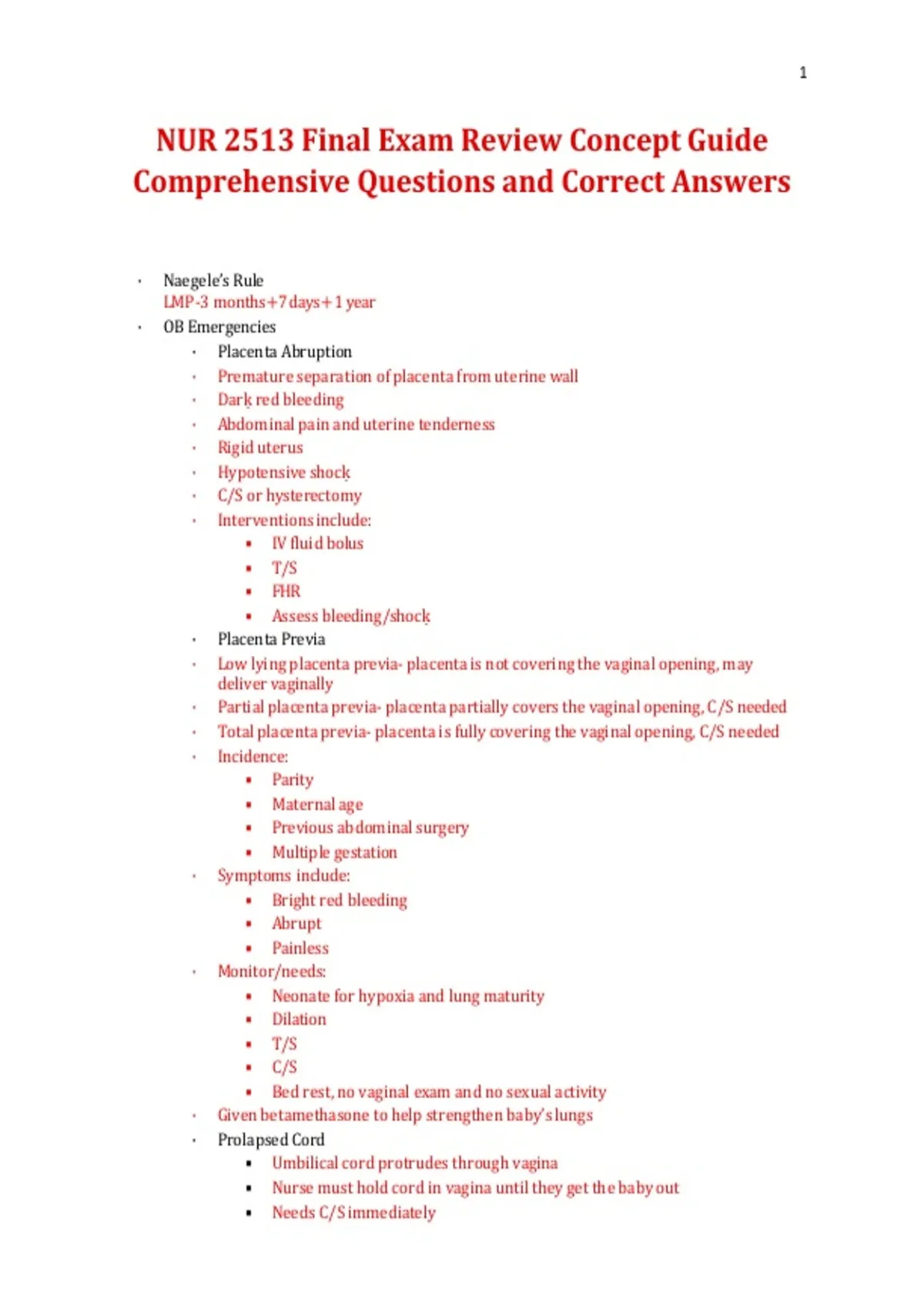 This comprehensive concept review guide is designed for the NUR 2513 Maternal-Child Nursing final exam and includes in-depth exam-style questions with correct, verified answers. It covers key maternal, newborn, and pediatric nursing concepts, including pregnancy and labor complications, postpartum care, newborn assessment, pediatric disorders, and priority nursing interventions to support thorough final exam preparation.