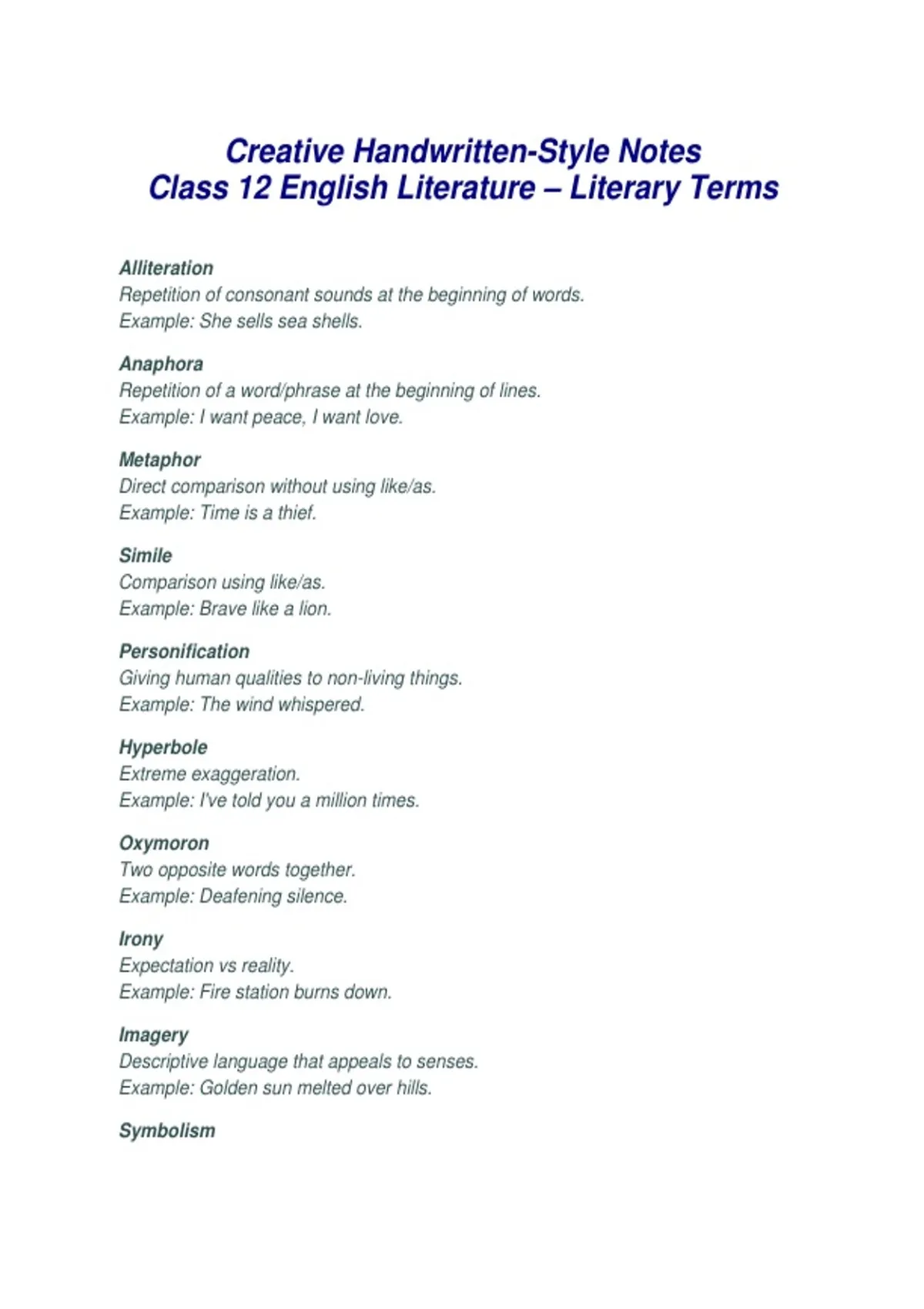 These are creative english literature notes Topic>> literary terms For students who are struggling to understand terms of literature