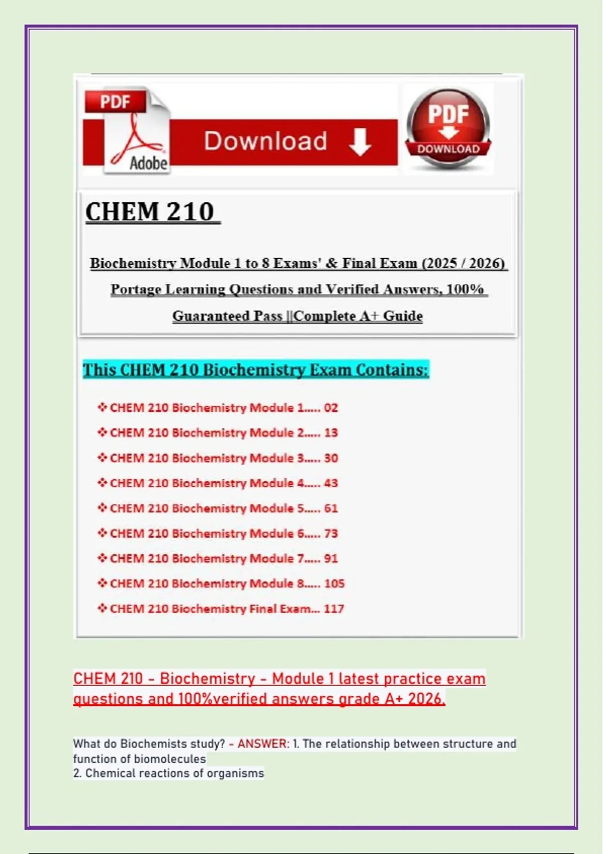 CHEM 210 - Biochemistry - Module 1 latest practice exam questions and 100%verified answers grade A+ 2026.