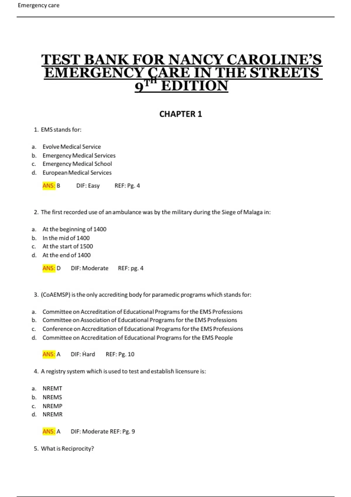 TEST BANK FOR NANCY CAROLINE’S