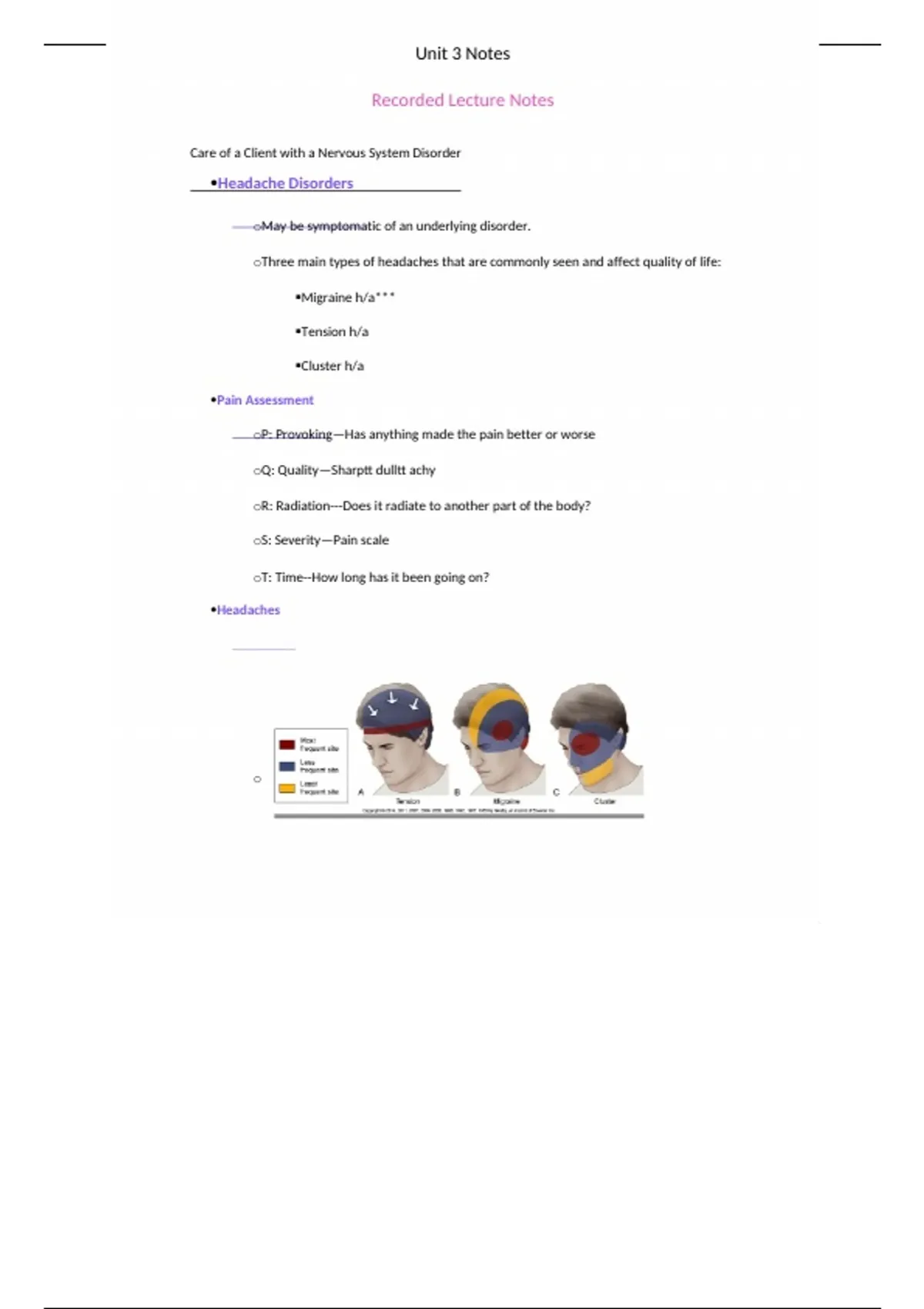 NUR 170 Unit 3 Lecture Notes on Neurological Disorders and Care | Questions and Answers | Latest Update | Correct AnswersNUR 170 Unit 3 Lecture Notes on Neurological Disorders and Care | Questions and Answers | Latest Update | Correct Answers