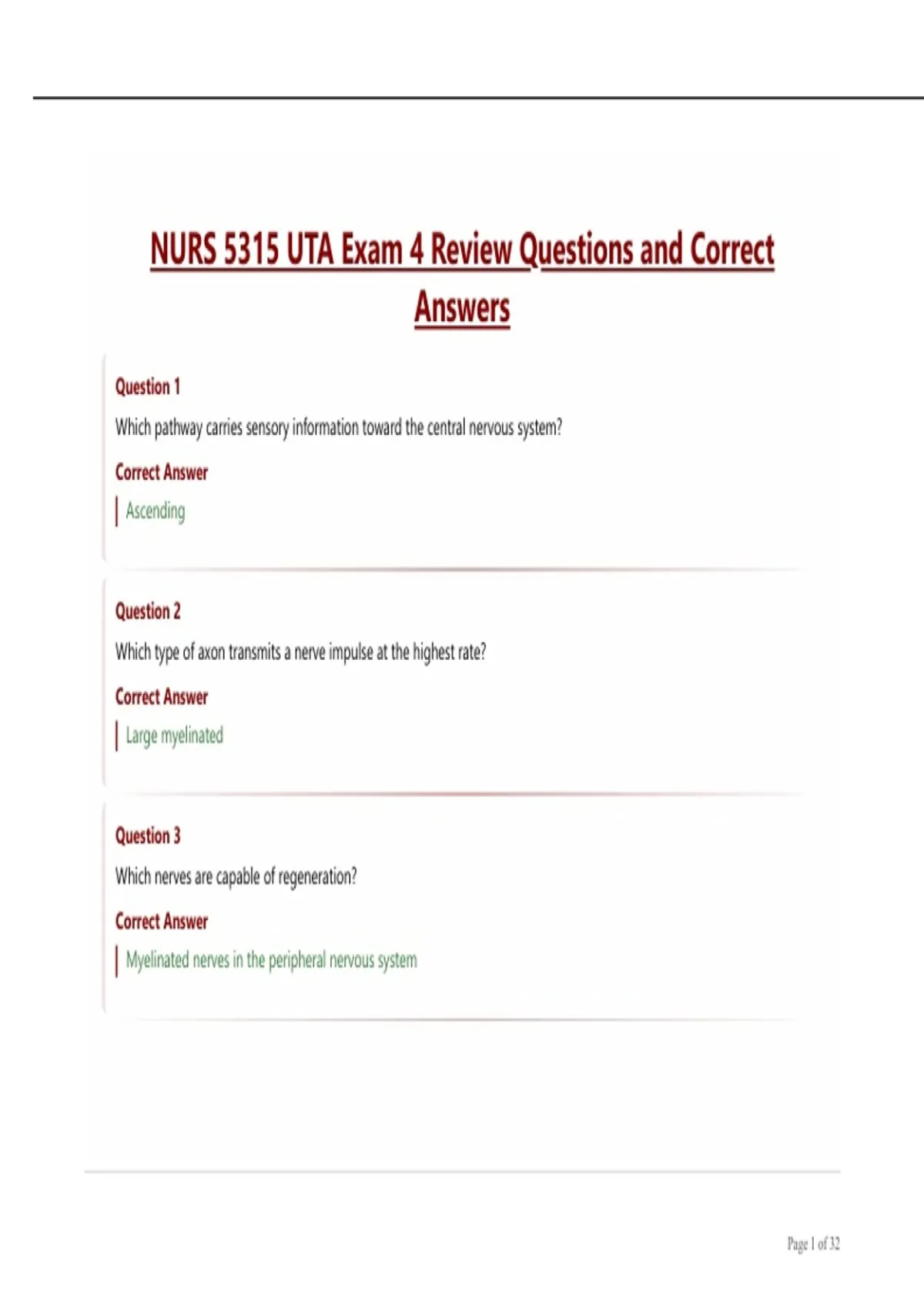 NURS 5315 UTA Exam 4 Review Questions and Correct Answers.