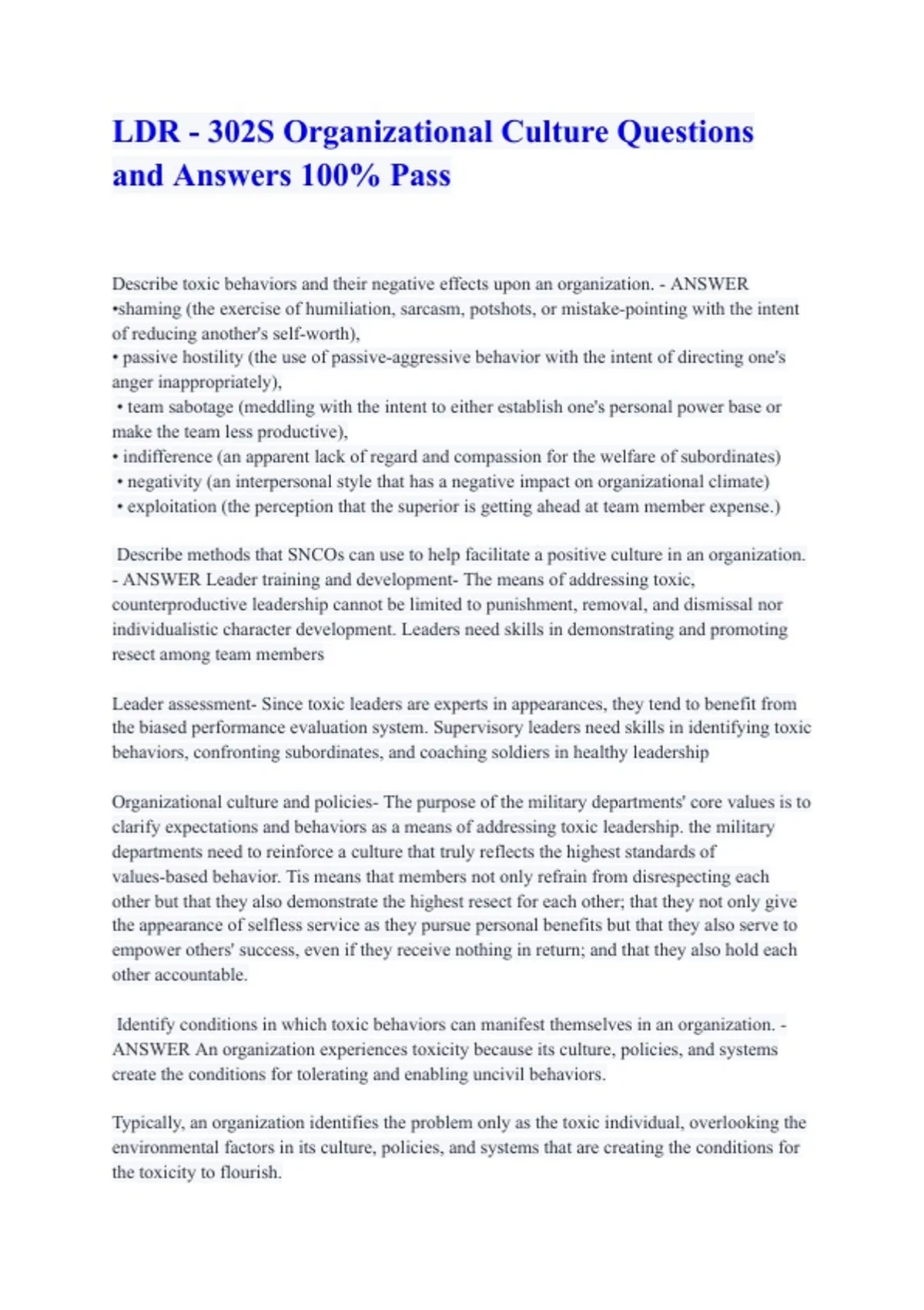 - ANSWER Leader training and development- The means of addressing toxic,