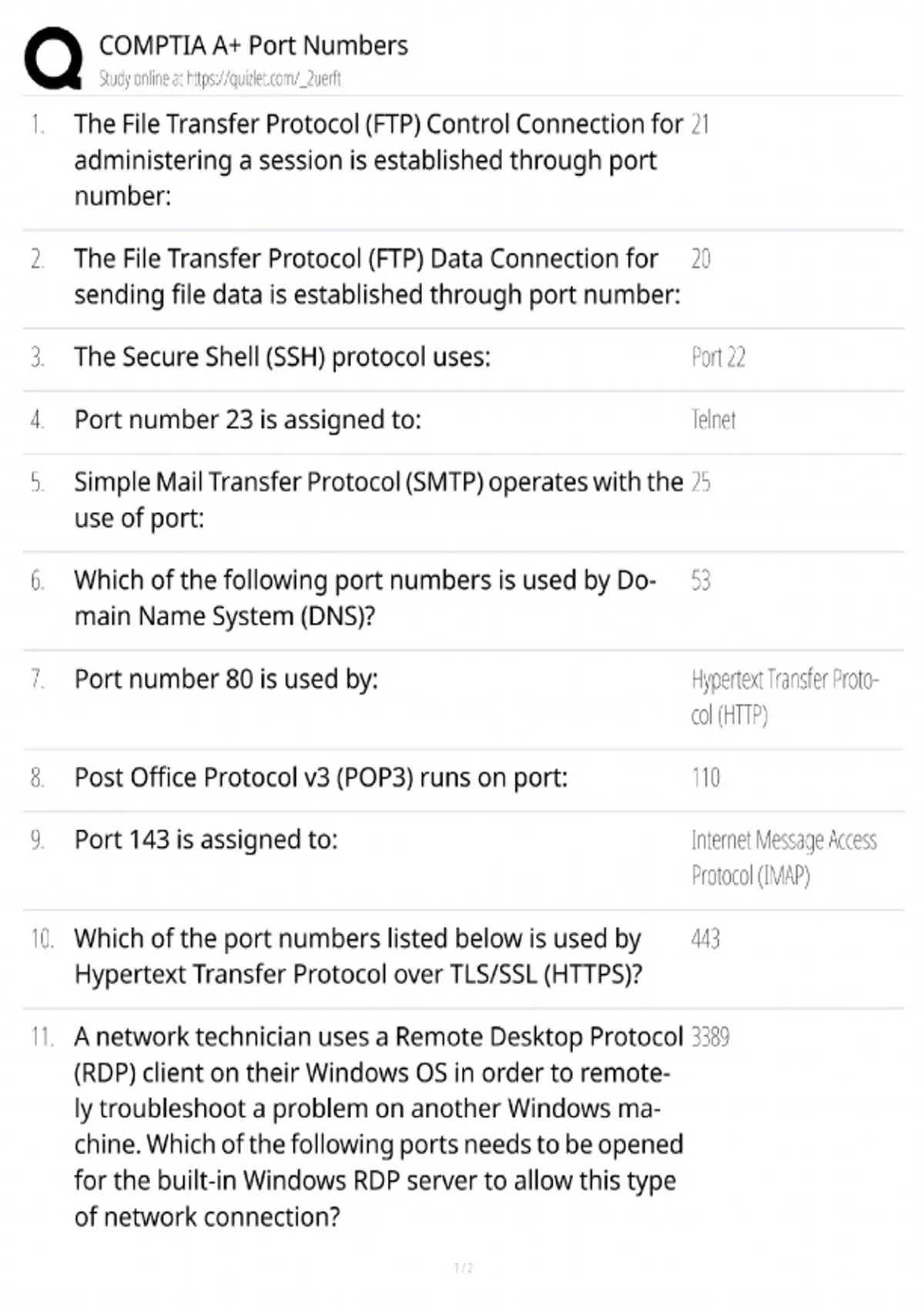 Master all essential CompTIA A+ Port Numbers for the 220-1101 & 1102 exams with this targeted 2025 study guide. This resource provides a complete list of critical port numbers for protocols like HTTP, HTTPS, FTP, SSH, RDP, and DHCP with their functions and uses. Includes memorization tips, practice test bank questions, and study notes to ensure you can identify every key port and score 100% on your certification exam.