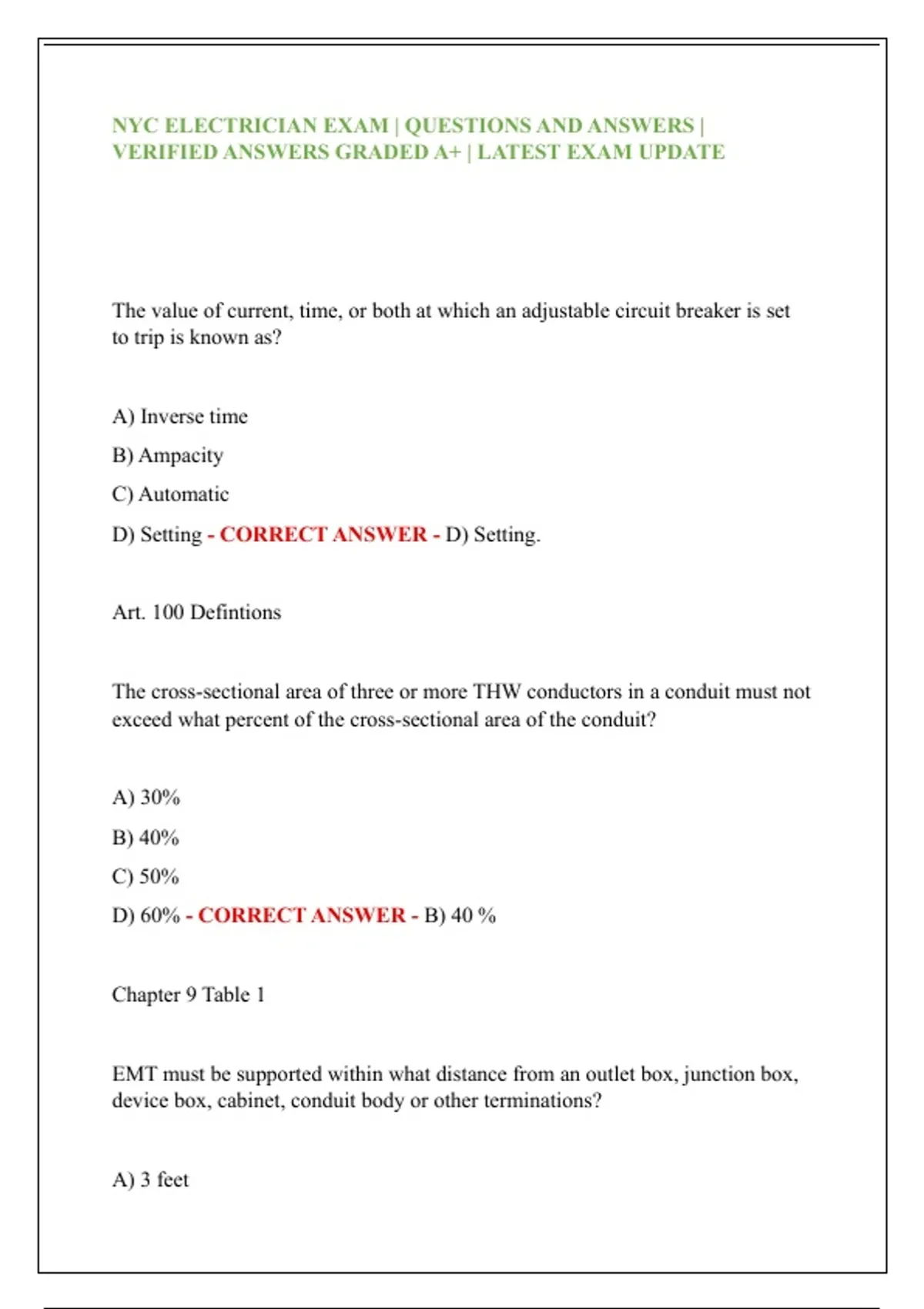NYC ELECTRICIAN EXAM | QUESTIONS AND ANSWERS |